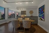 Experience bespoke luxury living in the heart of downtown Austin with the all-inclusive (includes utilities, 2 garage parking spaces, fully furnished) turn-key residence. Offering approximately 1,000 square feet, this one-bedroom, two-bathroom condo masterfully blends art, design, and functionality into an elevated lifestyle experience. From the moment you enter, curated details distinguish this home. Original works by contemporary artists—Macister Rodriguez’s Tree of Life (2024) in the bedroom, Floral (2023) in the dining area, Costel Iarca’s commanding Before You (2017) in the living room, and paired Joejene Santos pieces (2023) framing the television—create a gallery-like atmosphere. Furnishings from Four Hands and American Heritage complete the sophisticated aesthetic with timeless elegance. The chef’s kitchen features sleek black granite countertops, high-end stainless steel appliances, tiled backsplashes, under-cabinet lighting, and a full complement of cookware. Scorched concrete floors run throughout, while terrazzo-tiled bathrooms offer spa-like retreats. Expansive walls of windows flood the residence with natural light, highlighting every bespoke detail. Located on the 10th floor—the highest residential level before the penthouse—this condo provides unmatched privacy within a boutique 80-unit community. Controlled-access entry and two reserved first-floor garage spaces offer convenience and security. All utilities are included, ensuring effortless living. Step outside and immerse yourself in downtown Austin’s vibrant lifestyle: start your day with a stroll on the Texas State Capitol grounds. Explore thought-provoking collections at the Blanton Museum or The Bob Bullock Museum. Catch a captivating performance at the Paramount Theater or a playful set at the Comedy Mothership. Evenings come alive with Austin’s legendary live music scene—from intimate jazz clubs to high-energy rock—while dining at acclaimed restaurants and savory food trucks.