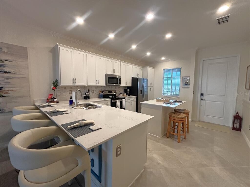 Beautifully furnished and fully turnkey 2BR / 2BA condo with golf membership in a highly sought-after gated golf course community in Wellen Park! Available for monthly rentals, this spacious and stylish unit is ideal for seasonal residents or quick getaways. The open-concept layout features a bright and airy living space, split bedroom floor plan for privacy. The kitchen is fully equipped and opens to the dining and living areas ideal for entertaining. Enjoy your morning coffee or evening glass of wine on the private screened lanai overlooking the golf course.This condo is located just steps from world-class community amenities including golf, clubhouse, resort pool, tennis, pickleball, fitness center, spa, tiki bar, and more. Conveniently located near shopping, dining, and Southwest Floridas World Class beaches, with easy access to major highways and airports. Just bring your suitcase everything else is here!
