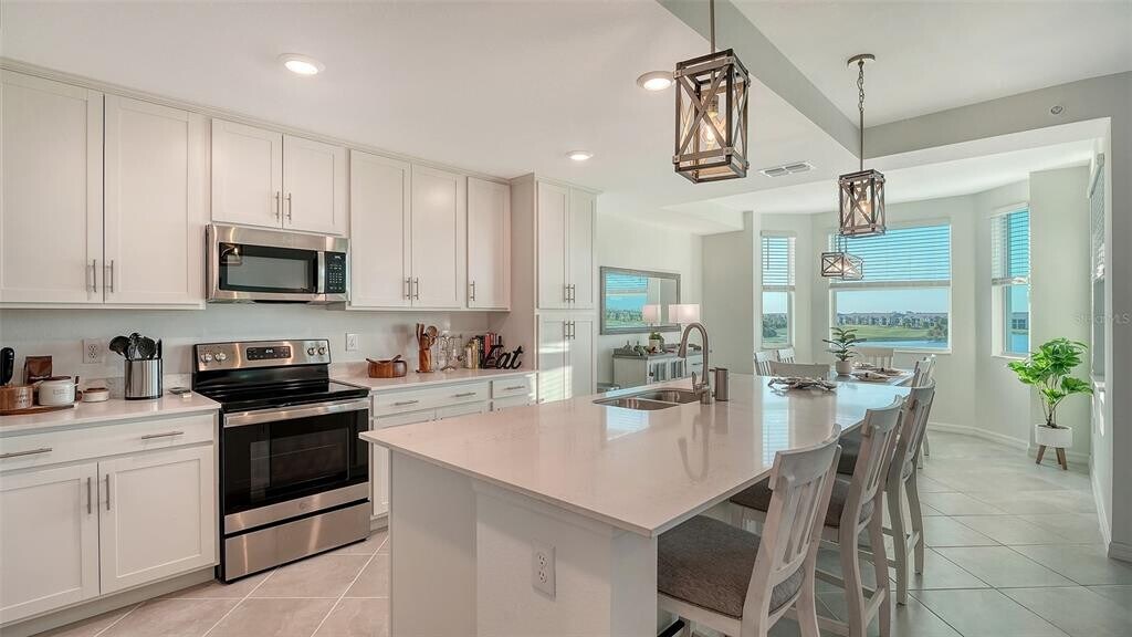 Fourth floor condo available with one of the best views of Wellen Park Golf and Country Club - complete with a transferable golf membership! Overlooking both the first and tenth holes,this prime location is just steps from the Golf Pro Shop,resort-style pool,tennis courts,Tiki Bar,and a full suite of amenities. Perfectly situated and beautifully maintained,this condo puts you walking distance at the heart of it all. This 2-bedroom,2-bathroom condo offers a bright,open layout designed for both relaxation and everyday living. From the moment you enter,you’re greeted with natural light and a warm,inviting atmosphere. The spacious living area flows seamlessly into a modern kitchen featuring stainless steel appliances,ample cabinetry,and a large island perfect for entertaining. The owner’s suite includes a private en-suite bathroom and generous closet space. Step out onto the screened-in lanai and enjoy one of the best views in the community — a direct,unobstructed look right down the golf course. Whether you’re savoring your morning coffee or winding down in the evening,this view delivers a true resort-style experience. As part of Wellen Park Golf & Country Club,residents enjoy resort-style amenities,a vibrant social atmosphere,and close proximity to Downtown Wellen Park. Golf membership can be transferred to guests with a one-time transfer fee,giving you full access to the exceptional golf lifestyle the community is known for. Available for the months of January and April. Also available in the off-season,or annually starting in April. Please call for pricing! Queen sleeper sofa in living room. No smoking,vaping or pets allowed. MLS# N6141887
