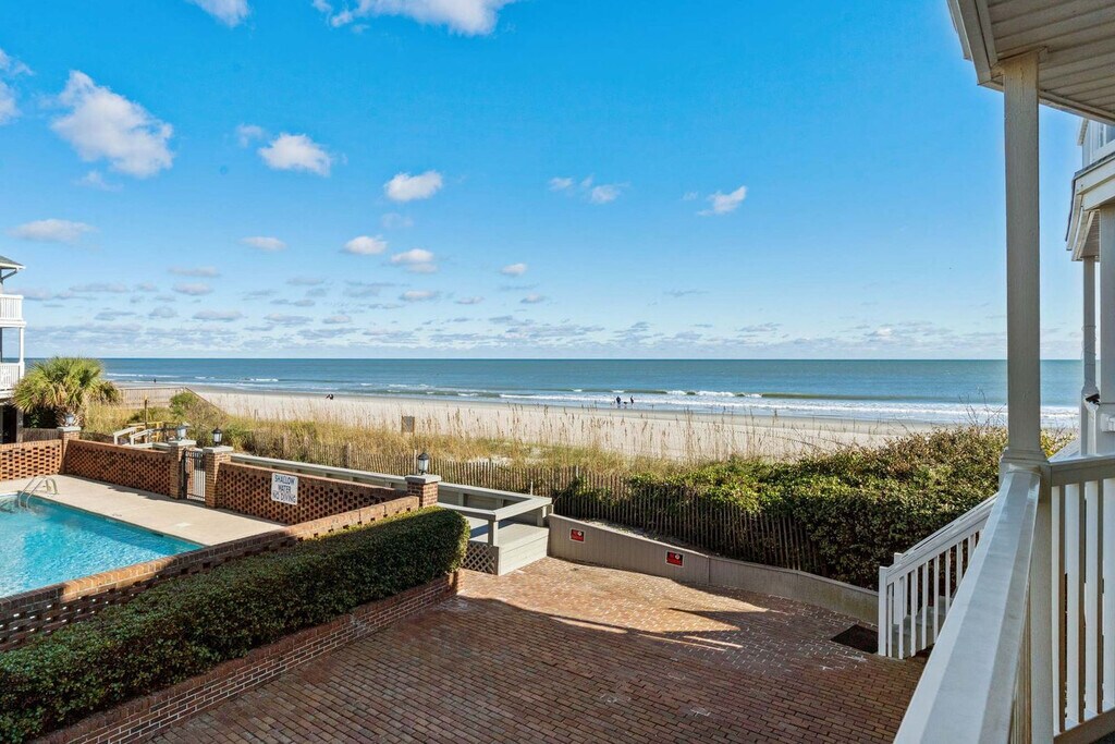 If you want to wake up every morning looking out at the Atlantic Ocean from any bed in the house, then look no further! This 3 bed/2.5 bath beautifully remodeled condo at Admiral's Quarters II has a large private garage underneath and is literally 100 feet from the waves and 50 feet from the pool in Surfside Beach. Take your pick of either the second level deck overlooking the ocean and pool or the 3rd level deck off the primary suite overlooking both as well. If you get tired of the views (you won't), rent a golf cart to take you out for a meal or some nightlife in Surfside or Garden City and feast on delicious seafood till your heart is content. Inside, you will find spacious open plan living/dining with seating for 6, a 60" Smart TV, a gorgeous kitchen equipped with stainless appliances and granite counters and everything needed to cook delicious meals. Upstairs you find the primary suite with a private en suite bath, 40" flat screen tv, large closet and breathtaking ocean views from the full glass slider. There is a hallway bath shared between 2 additional bedrooms containing a queen bed in the 2nd and 2 twin beds in the 3rd and yes you can still see the ocean from these bedrooms as well! There is also a W/D upstairs, half bath downstairs and back door access to the private garage from the first floor living space. Rest assured this will be the most relaxing and enjoyable vacation you have taken in years filled with memories to be cherished.