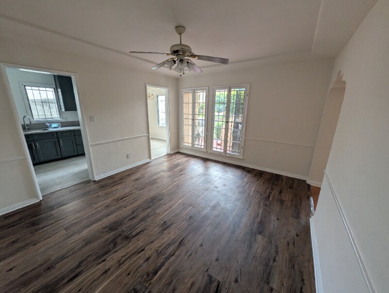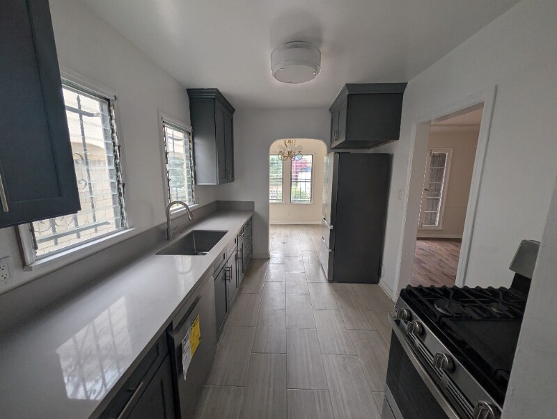 Charming and modern three Bedroom, two Bath duplex for rent in the historic Carthay Square neighborhood. Spacious 1683 sqft. • Refinished hardwood floors throughout. • Newly remodeled kitchen with granite counters and stainless steel appliances, including NEW dishwasher. • Charming breakfast nook area with lots of natural light, and space for a table. • Newly remodeled bathrooms. • NEW central heating and air conditioning. • In-unit washer and dryer INCLUDED. • Plenty of storage space, including two walk-in closets. • Spacious dining room and living room with working wood fireplace. • Security system installed. • 2 Car Garage included. PRIVATE Patio area. • EV charging hookup in garage. • Joint backyard with access to fruit trees. Quiet and friendly neighborhood within walking distance of grocery stores, banks, restaurants, and La Cienaga Park. Within a five-minute drive of the Robertson Branch Library and Kaiser Venice hospital, LAFD, adjacent to the vibrant Pico-Robertson and Little Ethiopia neighborhoods.