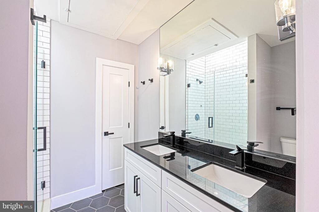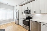 Available April 1st. Built in 2020, this two-level, 2BR/2 full BA condo is located just steps from the flourishing H Street Corridor. 9+ ft ceilings, recessed lighting & solid white oak floors throughout. Custom board + batten trim. An abundance of natural light from large casement windows & skylights. Front windows fitted w/ top-down, bottom-up shades. Kitchen features a quartz waterfall countertop, white shaker cabinetry, modern backsplash design, stainless steel appliances and pantry closet. Owners' suite includes an Ensuite w/ double vanity & frameless shower that has a skylight above. Full size laundry. Access the building from both front & rear entrances. This condo includes one private parking space secured by rollup alley door. Ample street parking. Small pets on a case-by-case basis.