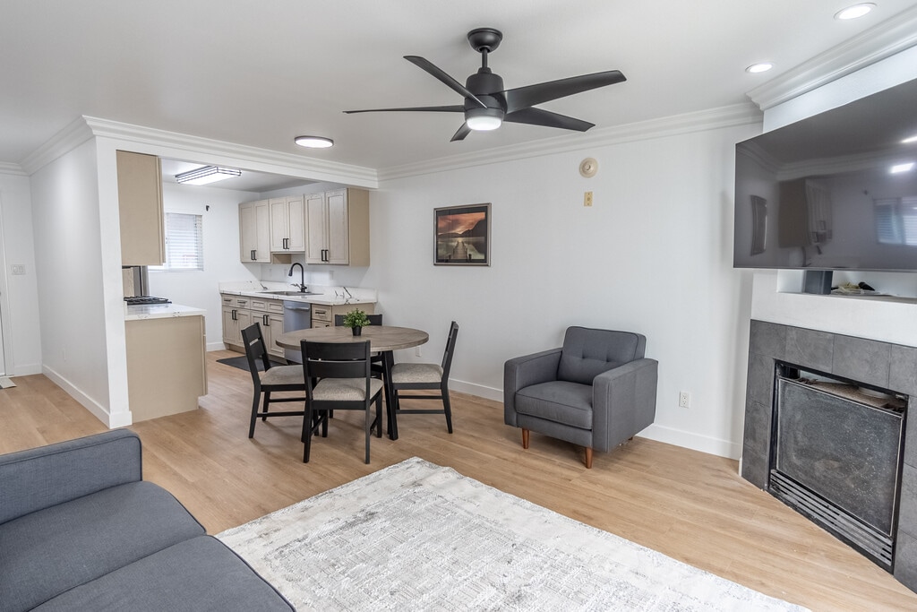 Welcome home to your fully-furnished Imperial Beach retreat steps from the sand! This two Bed one Bath 2nd floor unit is completely remodeled and feautures exclusive access to a private beachfront area, stylish kitchen and bath, flooring throughout, in unit washer/ dryer, cozy indoor fireplace, and 1 parking space! Escape in this wonderful beachfront property in the vibrant neighborhood of IB!