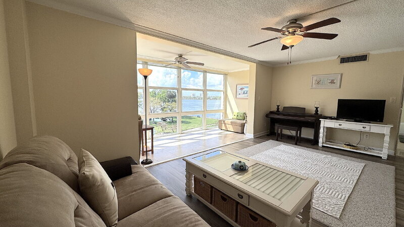 Enjoy coastal living in this beautifully maintained, fully furnished 2-bedroom, 2-bath condo for rent in Daytona Beach, Florida. This bright and spacious unit offers an open-concept layout with plenty of natural light, a fully equipped kitchen, and comfortable living and dining areas perfect for relaxing or entertaining. Step into the inviting sunroom and take in serene views overlooking the sparkling pool and the tranquil river—an ideal setting for morning coffee or evening sunsets. The primary suite features ample closet space and an en-suite bathroom, while the second bedroom and full bath provide flexibility for guests or a home office. Tastefully furnished throughout, this condo is move-in ready and designed for easy, comfortable living. Conveniently located near shopping, dining, and the beach, it combines comfort, convenience, and scenic beauty in one perfect rental opportunity.