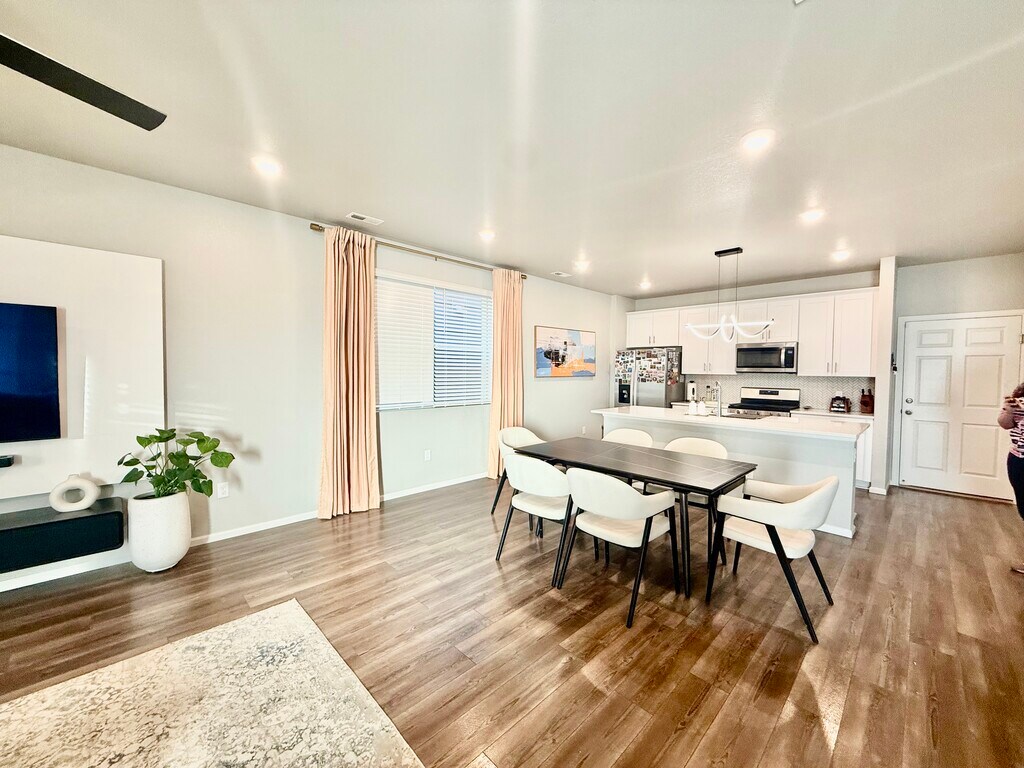 NOTE: This is not a fully furnished rental and pictures will be staged. Modern design and thoughtful details define this 2023-built Northglenn Colorado townhome. Bathed in natural light, the open-concept floorplan offers a seamless flow enhanced by soaring ceilings and vinyl flooring throughout the main level. The inviting living area opens into a contemporary kitchen featuring quartz countertops, stainless steel appliances, a gas cooktop, and generous cabinet storage. A convenient under-stair storage area provides additional space for pantry items, cleaning supplies, or seasonal belongings. Upstairs, carpeting creates warmth across all bedrooms. A versatile loft space on the second level provides the perfect area for a home office, media room, or study. The primary suite includes a spacious layout and a large walk-in closet, accompanied by an elegant en-suite bath. A large laundry room with custom cabinetry and a dedicated folding area adds exceptional convenience. Two additional bedrooms and a second full bath offer flexibility for family, guests, or work-from-home needs. Outdoors, enjoy a welcoming front patio ideal for seating and fresh air. A two-car attached garage provides secure parking and storage. Located in a very safe community, this residence sits directly across from a dedicated dog park and is walking distance to shopping centers and grocery stores. Commuters will appreciate being just a 10-minute walk from the downtown train, with quick access to major highways for added convenience. This energy-efficient home includes an advanced heating and cooling system, a tankless water heater, and LED lighting throughout, offering comfort while keeping utility costs lower. This property falls under Adam’s County Lease terms: We prefer a 15 or 18 month lease, though a minimum 12 months is required. Move-in date is flexible. Rent & Utilities Rent: $2,800/month for 12 months /15 months or 18 Renters are responsible for water, electricity, gas, trash, and sewer. Smoking Policy This is a strictly smoke-free home. No smoking or vaping is allowed anywhere on the property. Move-In Payments Security deposit typically equals one month's rent ($2,800) unless otherwise agreed. Pets: Pets are welcome! Cats or small dogs only (no medium or large dogs). Monthly pet fee: $50 per pet.