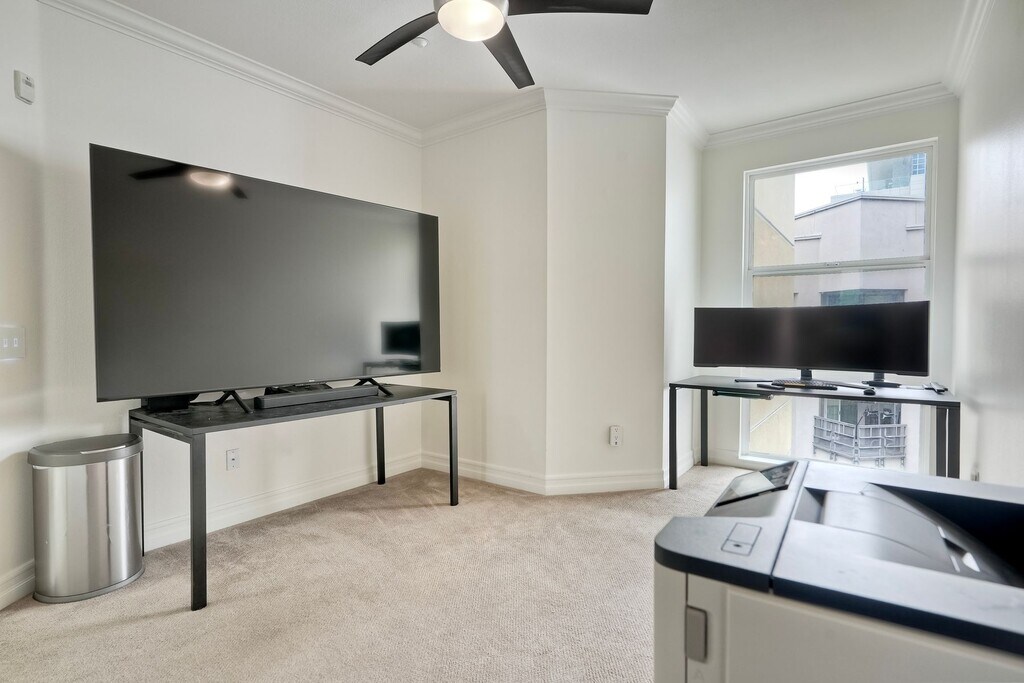 Discover urban living at its finest in this stunning top-floor 2-bed / 2 bath UNFURNISHED condo at Park Blvd East, offering 1,077 sq ft of light-filled space in the heart of East Village. Features include a modern kitchen with quartz countertops and a mini subway tile backsplash, updated bathrooms, sleek new finishes throughout, and a rare private rooftop deck — perfect for entertaining. The unit comes with two side-by-side parking spaces, a storage locker, and in-unit laundry. At Park Blvd East, enjoy building amenities such as a landscaped courtyard, on-site spa area, secure entry, underground parking, and bike storage — all within steps of restaurants, cultural spots, and downtown attractions. Live where city life meets comfort — this penthouse condo is a rare gem in San Diego's dynamic East Village. We'd love to work with you and welcome all Dep't of Defense (DOD), so if you're looking for something different, please inquire about Downtown Condo Guys' other listings.