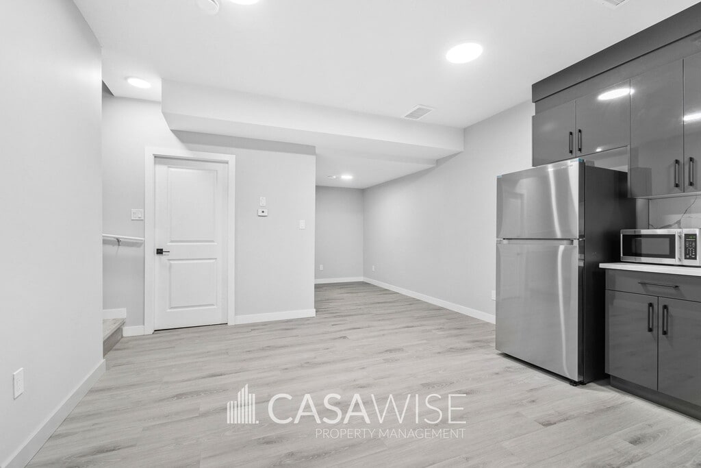 COZY 1-Bed/1-Bath Basement Suite in The Orchards! Check out this 1-bedroom basement suite with a bright, functional layout. Ideal for singles or couples! ? Spacious bedroom with ample natural light. ? Full bathroom with modern finishes. ? Quartz countertops for a sleek, modern finish. ? Durable vinyl plank flooring throughout. ? Fully equipped kitchen: glass stove top, microwave, refrigerator. ? In-suite laundry for added convenience. ? Private entrance for added privacy. ? Street parking available. Snow removal is tenant's responsibility. Situated in the vibrant Orchards community, this home is just minutes from a convenient plaza with Co-op, a gas station, Shoppers Drug Mart, and various dining options. It's also near Jan Reimer School and offers quick access to 66 Street for easy commuting. Enjoy exclusive access to The Orchards Clubhouse, private park, and a range of resident amenities. Tenant is responsible for 30% of the total monthly utility bill, shared with the upstairs tenant (who covers 70%). One small pet is negotiable with a fee of $50/month. Pet approval is at the time of the application and not guaranteed thereafter. No Smoking. Professionally managed by Casawise Property Management Only applications received through our site will be processed: If interested, please provide us with your name, phone number, available times for viewings and a little background about you (when do you need the unit for, how many people would be living in the unit, etc.). Thank you!