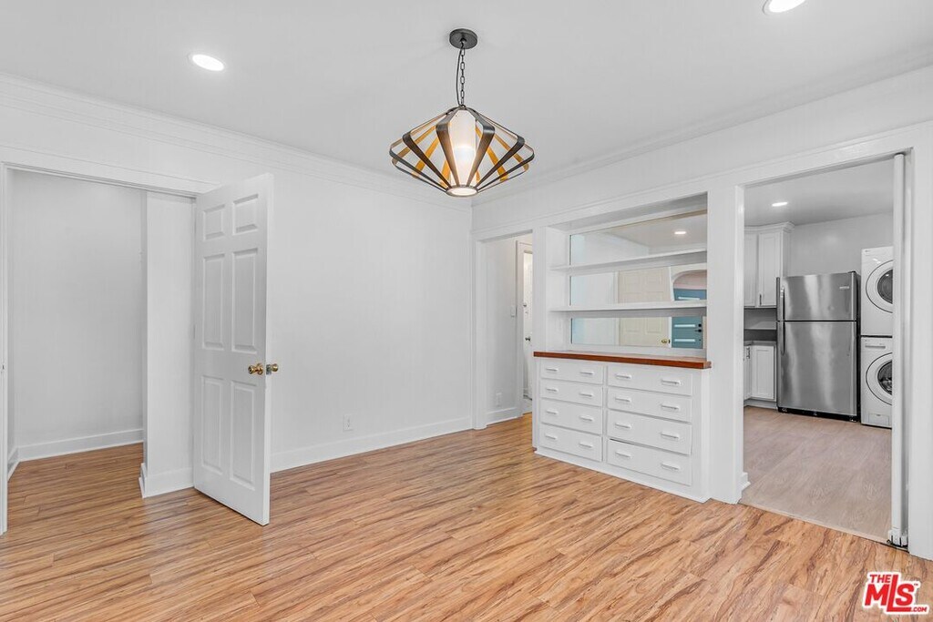 Do you hear that? That's the sound of your heart fluttering as soon as you laid your eyes on this darling duplex. This remastered complex still holds onto some of that vintage charm we all love. As soon as you step foot through the privacy gate, this little wonderland is waiting for you. Instantly, you'll notice the flooring that bounces natural light all around the home. The living room features recessed lighting, a ceiling fan, and a ductless AC unit. Pass through the curved archway and you're in your snazzy dining room. Don't need a dining room? Use this as an office, second seating area, or reading room. With a large closet and built-in cabinet, there are so many possibilities. Through the dining room, we enter into the recently updated kitchen. It features stainless steel appliances, sleek new countertops and cabinetry, updated flooring, and your very own stacked washer and dryer tucked into the space. With all of those upgrades, there's still room to spare. Just add a bistro table or kitchen island to finish it off. Heading down the hallway, you'll come across the bathroom with a refreshed vanity and glass standing shower. At the very end of the hall is your spacious bedroom that features a walk-in closet, ductless AC unit, and access to your backyard. And speaking of the backyard, it has been fully reimagined and now feels like your own slice of Palm Springs. With fresh landscaping, turf, a patio space, and a gorgeous new pergola with string lights, it's made for lounging, grilling, and gathering with friends. Whether it's a sunny brunch or a chill night under the stars, this space is ready for it. Last but not least, let's talk neighborhood. So many hidden hangouts like Dollar Hits, Woon, B , and more when you venture just outside Historic Filipinotown, too. Not to mention, Griffith Park, the LA River bike path, Dodger Stadium, Chinatown, Los Feliz, and Frogtown are all about 15 minutes away. Can't decide where to go? That's ok. You can sit outside in your yard with a blanket, a good book, and a freshly brewed cup of tea. Just take in nature in the comfort of your own home. What are you waiting for? MLS# 25609647