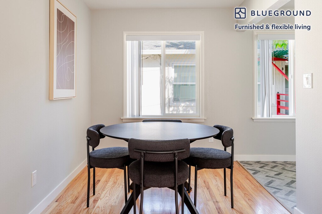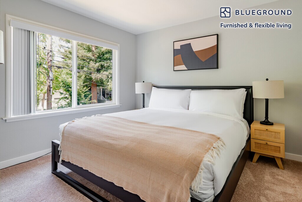 Discover the best of Menlo Park, with this two bedroom apartment in Menlo Park. It’ll be easy to simply show up and start living in this contemporary furnished apartment with its fully equipped kitchen, lovely living room, and our dedicated, on-the-ground support. (ID #SFO1999) The advertised rate of $3,850/month is the lowest available price, based on a 1 month(s) and 29 day(s) stay with a move-in date of November 13, 2025. If you’re looking for a 1-year stay, the rate is $4,920/month. Rates vary depending on the duration of stay, season, and other parameters. For exact pricing and additional pricing components, please visit our website and enter your desired move-in and move-out dates. The rate is applicable when billed upfront; it can be higher if billed in multiple payments. Brokers are welcome to reach out. Were you looking for an unfurnished lease? Try Blueground instead and upgrade from unfurnished to furnished living: - Furnished at rates comparable to unfurnished - No setup or furniture costs - save thousands - Move-in ready - save time, just bring your suitcase Designed with you in mind As with any Blueground apartment, you’ll find a thoughtfully designed space complete with beautiful furniture and a fully equipped kitchen in this two bedroom property. And, thanks to our superior quality mattresses, luxury linens, and towels, you can relax knowing you’ll always feel comfortably at home. When you’re ready for some fun, you can take in the Menlo Park vibes or bring the entertainment to you with the premium wireless speaker or smart TV. This apartment also offers in-apartment laundry. Sleeping arrangements Queen Bed, 63in/160cm Queen Bed, 63in/160cm Amenities Building amenities unique to this two bedroom apartment include an on-site: - Dryer - Washing machine - Parking - Pets allowed Arrival and ongoing support The entire apartment is yours to enjoy! Throughout your stay, you’ll have access to our Client Experience team through the Blueground App. You can schedule additional cleanings, submit maintenance requests, and view our neighborhood recommendations with just a few taps. We’ll share all details upon confirmation of your stay. Ideally Located This furnished home is located in Menlo Park which is directly north of Palo Alto. Here residents are friendly, the streets are lined with trees, and there are parks dotted throughout the neighborhoods. This city is home to many venture capital firms, primarily found on the infamous Sand Hill Road. There is a Caltrain station that can take you all the way north to San Francisco or as far south as San Jose. Other things to note This Blueground apartment has flexible lease options, allowing you to book it for one month, a year, or more. Pets are welcome, though weight limits and breed restrictions apply and may incur fees. Parking is offered based on availability and is subject to a fee. Please keep in mind that this is a walk up building. We take great pride in ensuring every photo displayed is shot in our own units with our actual furnishings. That said, we regularly refresh our decor and furniture arrangement, which may differ from what’s pictured.