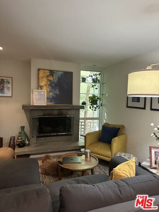 A Fabulous, private unit, it is an Elevated 1st floor unit, basically 2nd floor in height. It features a sleek designer kitchen and bath, light oak hardwood floors, custom cabinets, stainless appliances, and cement counter and breakfast bar. Recessed lighting throughout. Large living room has a gas fireplace and access to private balcony. The bedroom opens to the balcony and has a large, walk-in closet. The unit offers easy access to pool, laundry, gym and secure, subterranean parking, plus storage. Very quiet and private and Secure access. This is Condo is located near Santa Monica Blvd., Hamburger Mary's, Joeys cafe, the WEHO City Hall, Gilson's market, Holloway cleaners and so much more all within a couple of blocks. MLS# 26661709