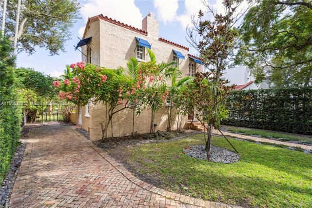 Step into classic Coral Gables elegance with this two-story Spanish-style residence, distinguished by its authentic Mizner architectural design. The main house provides a spacious layout with three bedrooms and 1.5 bathrooms, while a separate guest house offers a dedicated bedroom and full bath—perfect for an in-law suite or private studio. The home excels in outdoor entertaining, featuring multiple balconies, patios, a central courtyard, and double loggias. The beautifully manicured gardens and charming water fountain create a true oasis. Inside, the formal dining and living rooms lead to a freshly-painted family room and an impressive open-style kitchen equipped with stainless steel appliances and granite countertops. Architectural highlights include a stunning staircase.