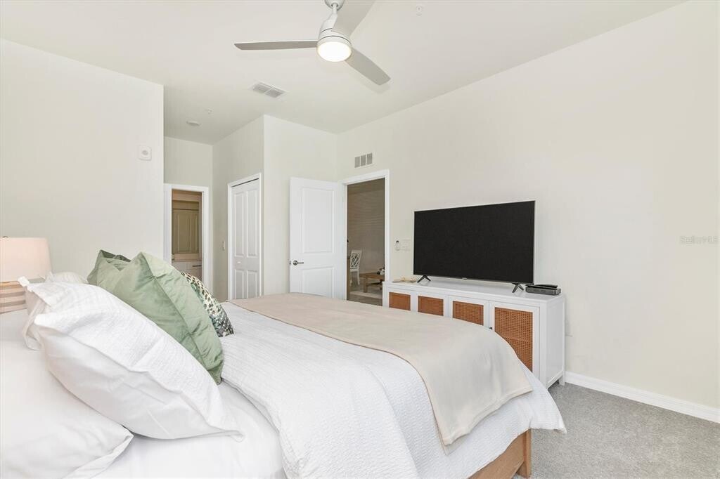 Your Dream Vacation Awaits! Whether it's a girl's getaway,a golf trip with friends,a romantic time with your significant other,or a work-from-home experience that feels like a vacation,we have the perfect spot for you! Introducing this stunning,brand-new 2-bedroom,2-bath condo on the 4th floor,boasting breathtaking views of the Gordon Lewis Championship Golf Course. The golf course is ready for play,and the Sunshine State is calling your name! As you arrive at your very own covered parking spot,you will find the elevator just a few steps away for your convenience,go up to the 4th floor and just to the left you can immediately enjoy breathtaking views. You will be in awe as you open the main door,this condo was decorated with a tropical beach and chic vibe that you will enjoy throughout the rooms. First,you will find a very spacious kitchen with a center island and seating for 6,fully equipped to cook your most delicious meals,lots of cabinetry space,S/S appliances,coffee maker,toaster,wine glasses,pots and pans,and more. To the right you will find a tastefully decorated bedroom with a Queen size bed and top-of-the-line mattress and your very own TV,linens and towels just outside of the bedroom at the linen closet,and right next to it is a full bathroom with a laundry room. An open concept Dining and Living room with a 65” TV to enjoy your favorite shows,and very stylish and comfortable furniture,right next to it is the sliding glass door that takes you to the lanai,with a beautiful and peaceful setting and gorgeous views of the 10th hole and 11th tee,where you can enjoy your favorite drink while you can witness the sunrise or sunset. The Primary room has window overlooking the golf course,King size bed and top of the line mattress too,also you very own TV,two walking closets and a spacious en-suite bathroom with spa-like feel and a linen closet full of beach towels,towels and bedding set. As part of the amenities the community offers Lagoon-style pool & spa,miles of walking trails,Tiki bar,Tennis & pickleball courts,Fitness center,Golf & tennis pro shop. Explore the vibrant Downtown Wellen Park and CoolToday Park,just minutes away. Plus,enjoy the nearby unspoiled beaches,unique flora and fauna,exciting retail,and dining options,new Costco just a few minutes away. This is the ultimate vacation destination for world travelers! Monthly rentals available. Monthly Off-Season $3500. Golf privilege for additional transfer fee. Monthly High Season: $5500. Don't miss this opportunity to experience luxury living in Florida's sought after Wellen Park Golf & Country Club! Contact me for more details and book your stay today! MLS# N6134319