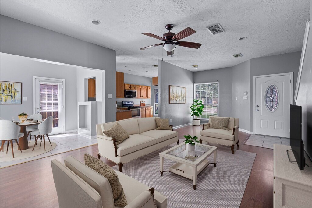 This 2-story home boasts 5 bedrooms, 3.5 baths, and a game room upstairs. It offers 2,556 sqft of living space, and sits on a 6,600 sqft Lot. There are vinyl plank floors throughout, no carpet. Conserve energy with ceiling fans in the living room, game room, and in all bedrooms. The living room is very spacious, and it smoothly connects with the dining, and kitchen areas. The backyard is equally impressive with vast green areas, a tool shed. It is perfect for any outdoor activities you want, including hosting a tasty barbecue for family and friends. If you are looking for a quiet community, search no more, this is your best bet. It also has easy access to Sam Houston Toll Rd/Beltway 8 and to Interstate 69/59. If you are fan of races, this home is great for you since the home is near the Houston Motor Park, and Rio Bravo Motocross Park. Schedule your private showing today.