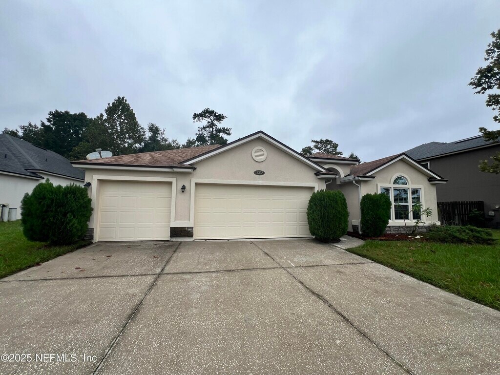 Located in NE Jacksonville in Dunns Creek Plantation with quick access to I-295 this one story,four bedroom,three bath home features a THREE CAR GARAGE. Spacious open floor plan showcasing the living/dining combo,kitchen and breakfast room and a triple-split room layout allowing space and privacy for all bedroom arrangements. Lanai for your outdoor retreat backs up to wooded preserve view. Gourmet kitchen with double ovens and ample cabinet and counter space making dinner plans a breeze. This home is ready for quick move in. Enjoy access to the community pool and playground. Tenant responsible for lawn care and all utilities.