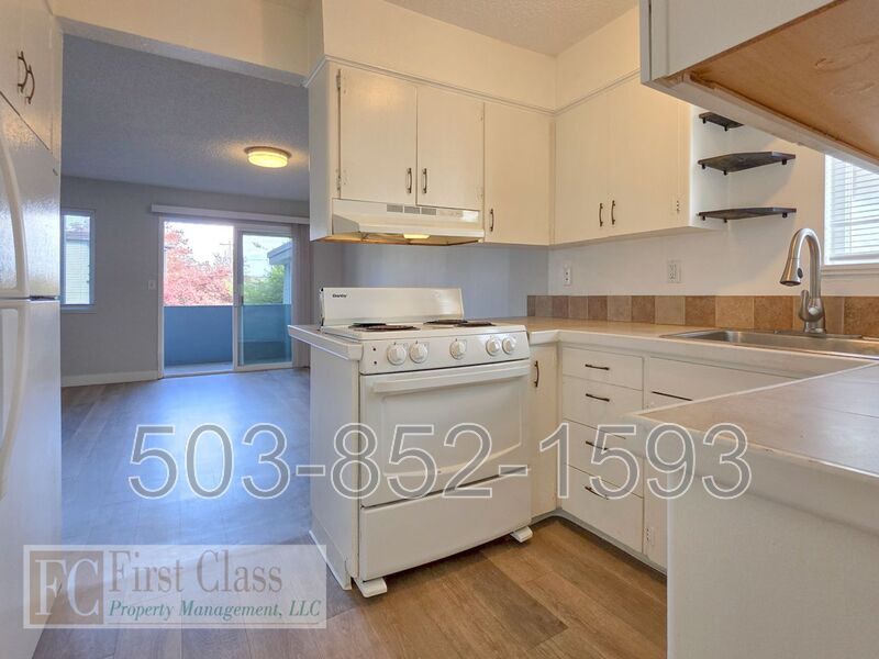 Under New Management! Come check out Tigard Terrace! VIDEO TOUR: Welcome to Tigard Terrace! This quaint community is nestled in the heart of Tigard near Old Town. Easy access to public transportation, Freeway, local shopping & dining! Step into your freshly updated apartment. Luxury plank flooring throughout (NO carpet!), fresh paint, energy efficient windows and new appliances. Kitchen includes range & fridge. Slider to covered deck off the living room. Down the hallway are the bedroom and bathroom. The property has a laundry facility, off street parking and locking mail. UTILITIES Water, sewer and garbage are included in the monthly rent. Resident is responsible for electricity. PETS Up to 2 pets (Cats or dogs) are welcome at the property. Each pet must be at least 12 months of age. Pet rent of $25 monthly + additional security deposit of $300 per pet does apply. OTHER We are offering this apartment on a 12 month lease to start. Renters insurance is required and there is no smoking indoors or within 25 feet of any building. This property is newly managed by: First Class Property Management, LLC Amenities: Laundry Onsite, Range, Fridge, Locking Mail, Tile Counters, Covered Deck, Small Community, Window Coverings, Off Street parking, Luxury Plank Flooring, Reserved Parking, Fresh Paint