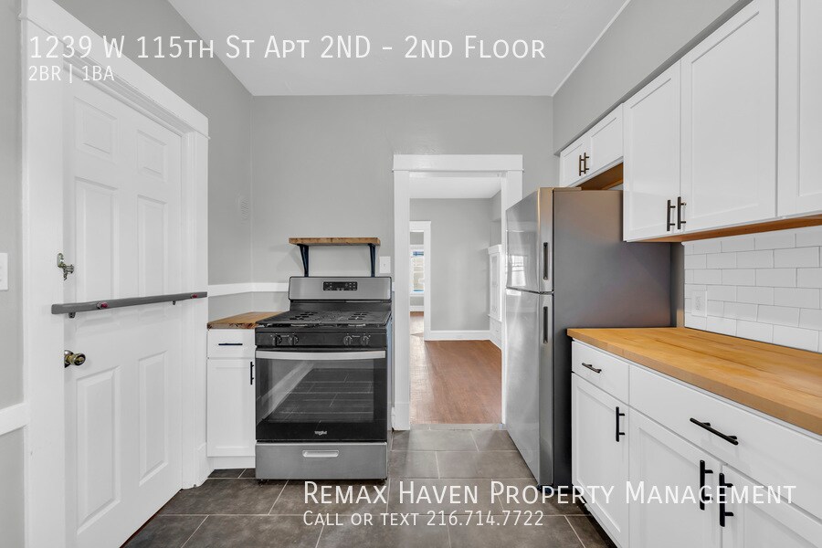 1239 W 115th St 2nd Floor, Cleveland - Stunning 2 bed 1 bath multi family home. Gas Included! Please utilize the ShowMojo online scheduler to fill out the prescreening questionnaire and to schedule your showing! $1200 rent / $1200 deposit $49 application fee per adult 1-2 pets OK with approved PetScreening and PetFee.(Some breed restrictions apply per HUD guidelines). NO SMOKING 1 time $129 non-refundable set up fee paid at lease signing $30/month required resident benefit package; can include personal property/liability insurance for an additional $5/month for $35/month total. All applicants are required to fill out a PetScreening app, found on our website directly on the app before being processed. Even if you have NO pets - this app must be filled out. One-time, non-refundable pet fee of $200-300 per animal applies to all pets & must be paid prior to or when you pay your first month rent. (No fee for qualified assistance animals). Our app is processed through secure site: Findigs, they require ID & income verification. W/O this, your app will not be processed. They offer24/7chat support on their app directly for questions. Welcome home to this classic 2 bed 1 bath up unit of a multifamily home that is move in ready. The large living room features a decorative fireplace and gorgeous flooring that continues into the formal dining room that offers built in cabinets. The kitchen offers bright white cabinets with modern hardware and butcher block style counter tops. ** STOVE/FRIDGE can be provided at no additional cost, resident would be responsible for being present for install/delivery appt after move in date, and you must advise prior to signing your reservation fee that you're interested in having these purchased/delivered. We can not add after paperwork is signed. ** The full bath offers a tub/shower combo. Both bedrooms have fresh neutral paint and gorgeous flooring. Don't forget about the large covered front porch that overlooks the front yard! No off street parking provided, but there is washer/dryer hook ups in the shared bsmt for this unit. This one won't last long! Resident pays electric. Resident to handle snow removal. Serious inquiries only.Resident pays electric. Resident to handle snow removal.