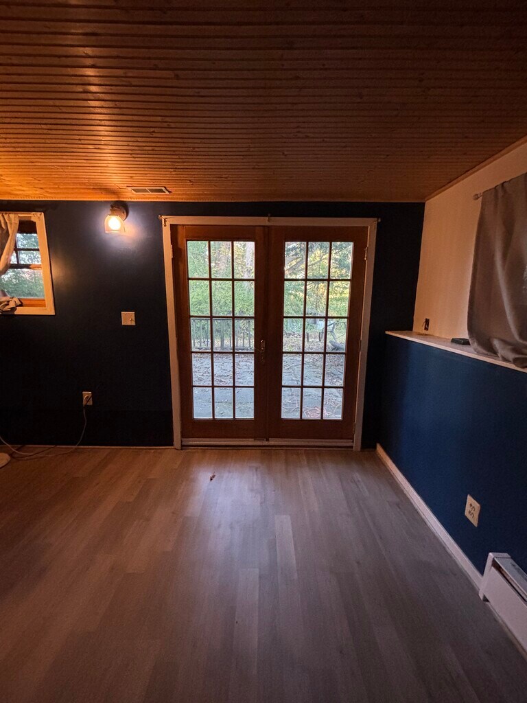 Two bedroom, one bathroom cottage with private land space on shared 1.8 acre lot of lawn and surrounding woods. Main entrance opens to vaulted ceiling living room with brand new flooring, fireplace with overlooking large eat in kitchen. Spacious kitchen pantry. Quaint three quarter bathroom with floor to ceiling stone tile and large adjacent linen closet . Downstairs leads to two bedrooms with brand new wall to wall carpeting on basement level with walkout to patio area shaded by surrounding large oak trees on large amount of private land and wooded space. Main Bedroom has two closets. Second bedroom with one small closet. Third lower level room is large utility room with laundry area. New refrigerator, washer, and dryer included. Stove also included. Address on beautiful rural back road. Property is hidden from street view. Tenant allotted two parking spaces. Address close to Brewster train station, rights to Tonetta lake, multiple local trails and bike path. Pets allowed under 30 pounds. Well water included. Heat/electricity NOT included. Property has electric heating and oil tank.