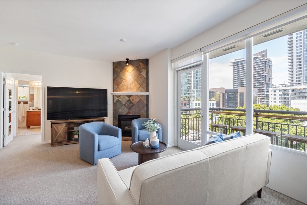 Enjoy year-round indoor/outdoor living in the wildly popular Treo building in this spacious 2 bed, 2 bath, 1 parking, FURNISHED UNIT with PRIVATE PATIO & CITY, BAY VIEWS & BEAUTIFUL SUNSETS. Warm, elegant interior features a gourmet kitchen with cherry cabinets, granite counters, and stainless appliances providing the perfect space to whip up culinary delights and entertain guests. The resort-style amenities include heated pool, spa, sun deck, BBQ area, fitness center, community room, security & concierge services! WALKING DISTANCE to EVERYTHING: fantastic dining, cafes, bars, boutiques, entertainment, Little Italy Farmer's Market, Waterfront Park, Petco & Balboa Park, Seaport Village, bay, train, trolley, airport, and more! We welcome all Dep't of Defense (DOD) We'd love to work with you, so if you're looking for something different, please inquire about Downtown Condo Guys other listings. Available from 1/16 through 2/27.