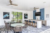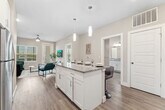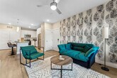 Feel at home in this modern 1-bedroom, 1-bathroom apartment in Orlando. This chic and cozy apartment offers the ideal base for your Florida adventure, combining comfort with convenience and featuring easy access to nearby theme parks, shopping, and dining options. The apartment features a bright and airy living space with ceiling fans in both the living room and bedroom, an open floor plan with upgraded flooring and stylish tile accents, and a screened-in patio. The living room includes a sofa bed (queen-size when opened) that accommodates 2 additional guests and a flat-screen 50” TV. The fully equipped kitchen features energy-efficient stainless steel appliances, sleek granite countertops, a refrigerator, stove, microwave, coffee maker, blender, toaster, cookware, and utensils. The spacious bedroom offers a king-size bed with premium linens, a large walk-in closet with iron and ironing board, a ceiling fan, and a 43” flat-screen TV. The full bathroom includes a spacious bathtub and essential amenities: toilet paper, shampoo, conditioner, shower gel, hand soap, towels, and hairdryer. Pets are welcome, but some breed restrictions apply: Pit Bull Terriers, Staffordshire Terriers, Rottweilers, Doberman Pinschers, Chows, Presa Canarios, Akitas, Alaskan Malamutes, and Wolf-Hybrids. A Pack 'n Play crib with crib sheet and blanket (no pillow) is also available. Enjoy the pool, stay active in the gym, or explore nearby attractions like Disney. This apartment is close to shopping, dining, and major Central Florida hotspots. Quiet hours are between 10:00 PM and 8:00 AM.