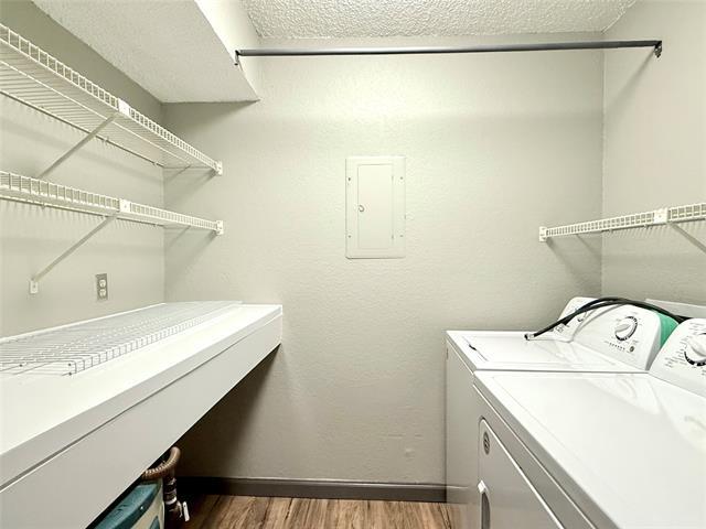 2-Bed, 2-Bath Condo in Gated Creekbend Subdivision Enjoy comfort and convenience in this well-maintained second-floor corner unit offering 1,006 sqft of living space, complete with 2 bedrooms, 2 full bathrooms, and a private balcony overlooking the pool area. Spacious split floor plan with pool views from every room. Wood-burning fireplace creates a cozy living space. Dedicated full-size laundry room located near the kitchen. Balcony storage for added convenience. Located in the gated Creekbend community, zoned for Richardson ISD. Access to 2 community pools and a tennis court. Conveniently located near Richland College, major highways, shopping, and dining.