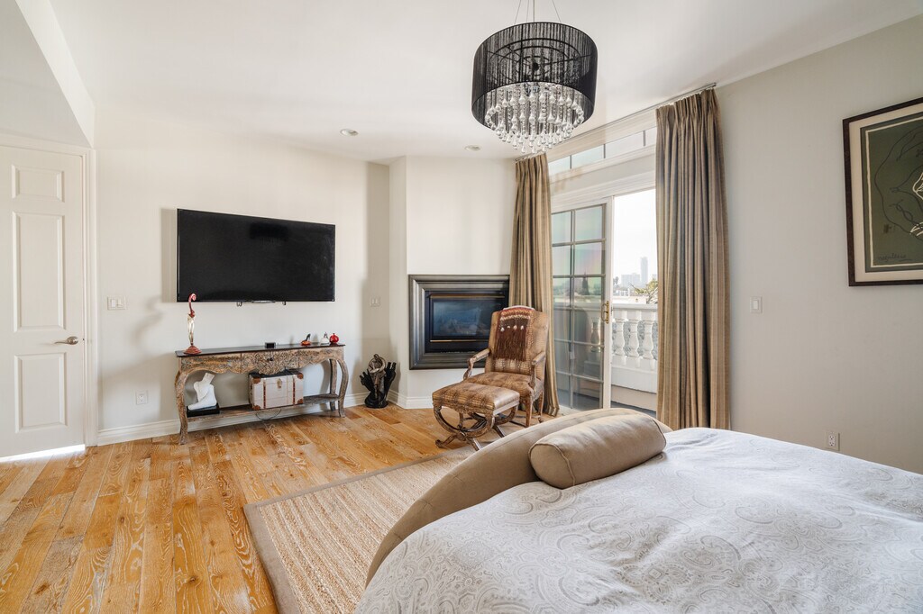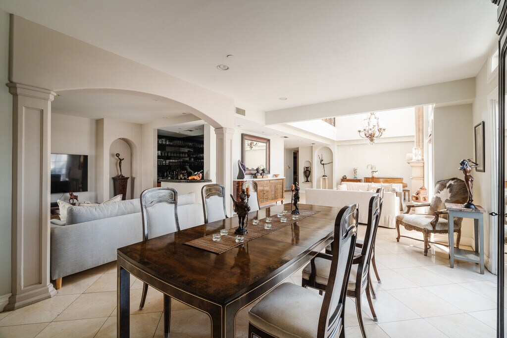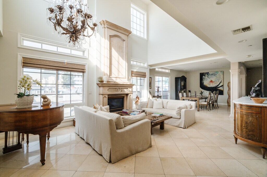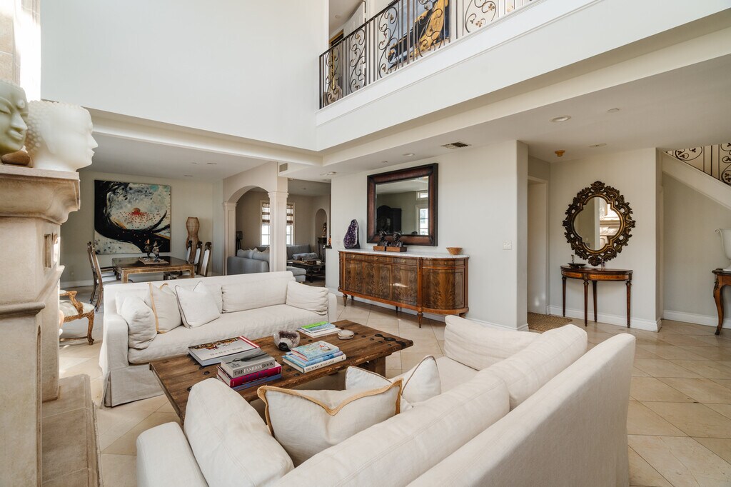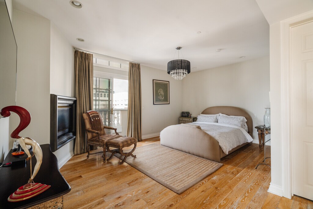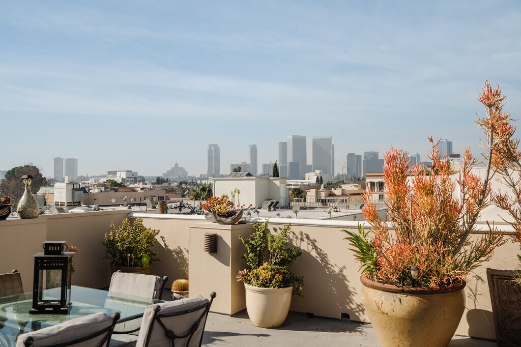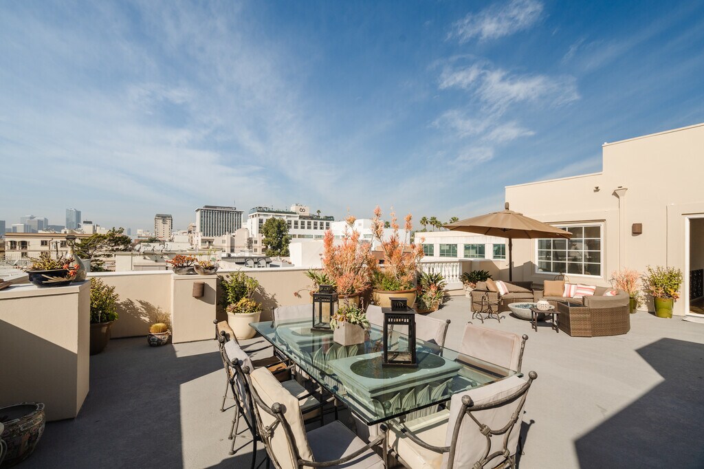 Stunning Two-Story Mediterranean Penthouse located in the heart of Beverly Hills, close to all the incredible restaurants, shopping and businesses that downtown Beverly Hills offers. Enter the fully furnished, spacious home via private elevator direct access to double height ceilings, tile and hardwood flooring, beautiful moldings and lots of light. The main floor includes an open Living Room and dining area with Romeo and Juliet style balcony, an intimate family room/Den with a full bar and sink, large kitchen with center island, stainless steel appliances and breakfast area, two guest bedrooms with full bathroom, Powder Room, and washer/dryer. Upstairs is a balcony overlooking the Living Room and leading to a massive private roof-top patio with amazing, picturesque views. Also, upstairs is the Primary suite with fireplace, walk in closet, and large bathroom featuring a spa tub and double sinks. Building is secure with coded entry, garage parking with 3 side by side spaces and guest parking. Offered fully furnished with linens, towels, dishes. MLS# 25561671