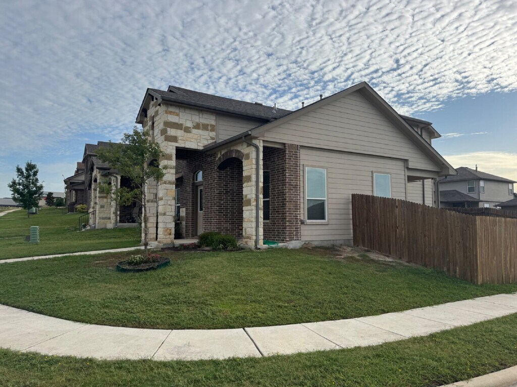 ***50% OFF FIRST FULL MONTH'S RENT!*** Three bed two bath two car garage in Cottonwood Creek. 5 min walk to Bowie Elementary School, community playground, close to San Marcos Highschool & Outlet Malls. Tile throughout the first floor, granite countertops. Texas Property Collective residents are charged for a Resident Benefits Package (RBP). Option #1 $46/Month includes renter’s insurance ($10k content & $100k liability), air filter delivery, utility set up, credit building (boosts your credit score with on time rent payments), rewards & $1M identity theft protection. Option #2 $61/Month includes everything in option #1 + up to 4 pest control services annually, each backed by a 30-day warranty. Covered pests include Ants, Mice, Cockroaches, Bed Bugs, Fleas, Ticks, Weevils, Mites. Subtract $11.95/Month from either option if tenant provides qualified renters insurance. More details in application.