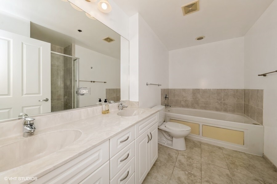 Surround yourself with beautiful southwest corner views. So bright and sunny! Enjoy living in this large 2 bed, 2 bath condo in Michigan Tower in the heart of the South Loop. Enter through the long welcoming foyer with large closet. Sun drenched living /dining room with engineered oak floors and versatile blinds on each floor to ceiling window, step onto your private balcony and enjoy. Kitchen features roomy granite peninsula/breakfast bar, granite countertops, tons of cabinets and stainless-steel appliances. Luxurious master suite with huge bathroom featuring double bowl vanity, standing shower and soaking tub, enjoy the walk-in closet, second access to private balcony and the additional large closet. You will appreciate the black out shade in the primary bedroom after a late night! Good sized second bedroom and large full second bath. New full size in-unit washer/dryer. Engineer oak floors in main areas with carpet in both bedrooms. Full amenity building includes outdoor pool, sun deck, fitness center, door staff and clubroom. Excellent South Loop location right off Michigan Ave, steps to public transit Red/Orange/Green Line Roosevelt stop, Grant Park, Museum Campus, Lake Michigan, Soldier Field, shops Trader Joe's and Jewel and restaurants. Asking for a minimum credit score of 700 and that the rent is 33% of the applicant's gross income. Non refundable move in fee of $800 due at lease signing. No pets please - Courtesy of RE/MAX 10 Lincoln Park - Contact Jorge RE/MAX American Dream