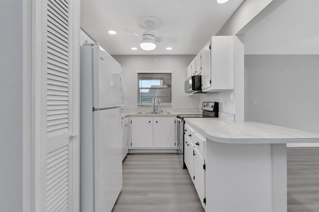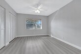 Spacious clean one bedroom on a 2nd floor with lots of closet space! Sunny open floorplan. close to community laundry, heated pool, clubhouse, very quiet community seeks neighbor that likes the same. Great location! Hard to believe your in the middle of everything you need. Close to Hospital, schools, shops, parks and beaches. Tenant pays electric, cable & internet. 1 pet under 15# ok. Hurricane shutters, reserved Parking, Sorry Association says, no trucks, motorcycles, scooters, smokers or commercial vehicles.
