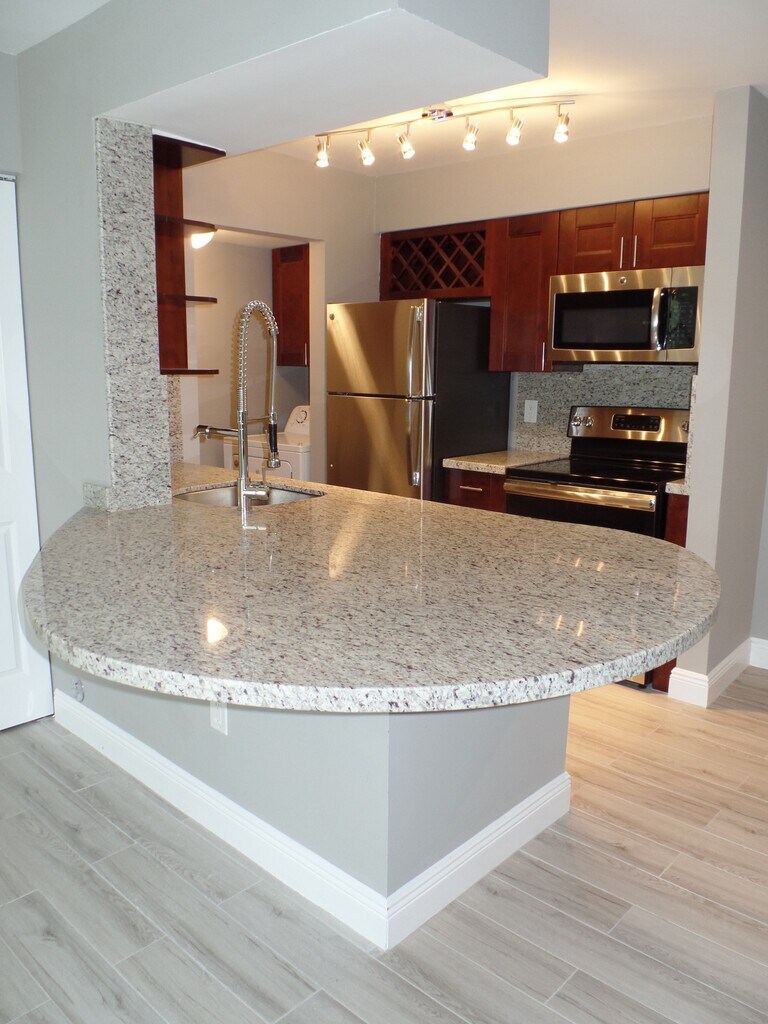 Upgraded 2BR/1.5BA first-floor condo in the gated community of Royal Poinciana. Available November 6. Newly renovated with granite counters, stainless steel appliances, porcelain tile floors, and walk-in rain shower. Features include in-unit washer/dryer, screened patio with storage closet, and walk-in closet. Community offers resort-style amenities: pool, fitness center, car wash station, lakeside walking path, and a large enclosed dog park. Prime location with easy access to I-95 and the Turnpike, close to shopping, dining, and entertainment. Water and trash included. Pet-friendly with no pet fees.