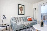 Feel at home in this charming apartment nestled in a peaceful and friendly neighborhood. With its own private entrance, this unit features a large living room, a fully equipped kitchen, a bathroom, a comfortable bedroom, and an in-unit laundry area. Guests can also enjoy access to a shared seasonal pool and gym, ensuring a memorable stay. The apartment is tastefully furnished with high-quality amenities, complimentary toiletries, and all the essentials to guarantee a memorable stay. The fully equipped kitchen allows for easy meal preparation, while the spacious living room offers a comfortable space to relax. Guests have access to a shared seasonal pool and gym, enhancing the living experience with additional recreational options. Located in a serene neighborhood, this apartment provides a tranquil escape while still being conveniently accessible to local attractions and amenities. The property gate closes after 7pm, and the gate code will be provided in the check-in information. Do not forget this code or you will be locked out of the complex after 7pm. The property does not have an elevator and the trash dumpster is located in the parking lot. Guests cannot receive mail here. Smoking of any kind is never allowed at this property, including the balcony or patio, as well as all common and outdoor areas of the building. Any smoking violations will result in a $500 fee. Quiet hours are from 10 p.m. to 8 a.m., and parties and large gatherings are strictly prohibited. Only certified service animals are allowed, and requests to bring a pet must be approved prior to booking. Unauthorized pets will incur a $500 fee. There is a one-pet-per-apartment limit, and only dogs are permitted. All designated fobs, keys, and parking passes must be returned to the original lockbox, with a replacement fee of up to $450 per item for any missing items. Check-in is at 4:00pm and checkout is at 10:00am, with fees for early check-in or late checkout. [SI]