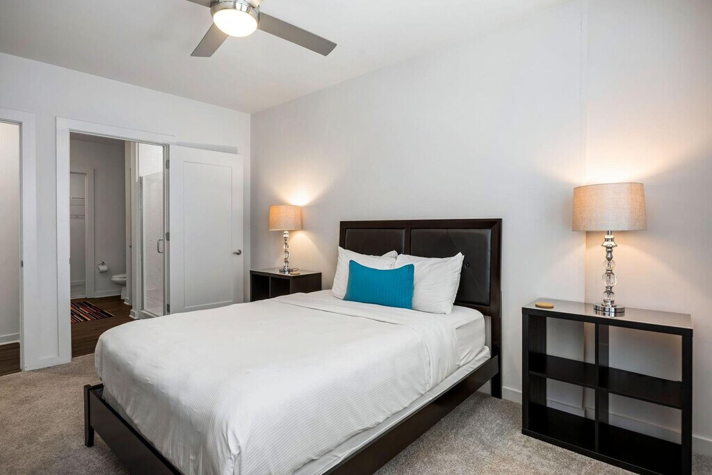 Experience the best of Atlanta in this spectacular 2-bedroom, 2-bathroom apartment located in the convenient Midtown neighborhood, just one block from Peachtree Street. Feel at home in this luxurious suite that includes bi-weekly cleanings with linen and towel change-outs, utilities, HDTV, and two free parking spaces. With easy access to Midtown and Buckhead, this apartment is perfect for both business travelers and those relocating to Atlanta. The apartment is fully equipped with modern furnishings, premium bedding and linens, a washer and dryer, a dishwasher, and everything you need in a kitchen to dine at home. The thoughtful design and premium amenities ensure a comfortable and convenient living experience. Pets are welcome with a limit of two small to medium-sized pets per unit, subject to breed restrictions. An additional $75 monthly pet cleaning fee applies, or a one-time fee for stays less than 45 days. Pet fees are charged separately after booking, and guests are responsible for any damage caused by pets. An additional deposit may be required based on breed, weight, and age. Situated in the vibrant Midtown neighborhood, this apartment offers easy access to the best of Atlanta. Whether you're exploring the bustling streets of Midtown or venturing to nearby Buckhead, you'll find yourself in the heart of the city's attractions and conveniences. Guests must check-in online using the virtual front desk at least three days prior to arrival, or at the time of booking if less than 48 hours from the arrival date. Arrival instructions and property access will be provided once the check-in and lodging agreement are complete and information is verified. The minimum age to book a reservation is 21 years old, and age will be verified after booking. A valid credit card for identity verification and a government-issued photo ID are required. A live selfie may also be requested. The apartment reserves the right to perform identity verification and criminal background checks on all guests and may terminate a reservation for any reason. [SI]