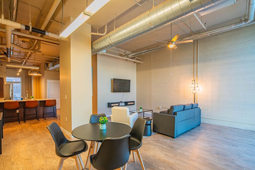 Feel at home in this stylish 1-bedroom apartment in Tempe, perfect for beer and food lovers. This modern apartment offers all the amenities you need for a comfortable stay. The living space features an innovative open-concept design that blends the living and dining areas with the kitchen, creating a modern and sleek living experience. The living room includes a sofa bed, chair, 4K 58" HDR smart TV, and coffee table. The fully equipped kitchen features a microwave, stove, oven, refrigerator/freezer, dishwasher, toaster, coffee maker with coffee essentials, electric kettle, sink with hot and cold water, glasses, silverware, pots, pans, and a dining table with chairs. The bedroom includes a queen-size bed with pillows, linens, and sheets, a reading lamp, and an office desk and chair. The private full bathroom is stocked with essential toiletries, including a bath with a shower, wash basin, mirror, toilet, towels, hand towels, and washcloths. Parking is available on the premises, and instructions will be given at check-in. Pets are allowed depending on size or if they are service animals for a fee of $20 per night. There is a 2 pet maximum and only cats/dogs are allowed. Breed restrictions apply to Alaskan Mala Mute, Belgian Malinois, Boxer, Show Chow, Dalmatian, Doberman Pinscher, German Shepherds, Husky Breeds, Pit Bull Breeds, Presa Canario's, Rottweiler, Staffordshire Terrier, and Wolf Hybrid. Walk to a renowned local brewery, top restaurants, cafés, and bars. Explore nearby attractions, scenic parks, and cultural hotspots unique to Tempe, just minutes from the best sights and experiences Tempe has to offer. If you are found to have brought pets without prior notification, there will be a $500 fee. There are noise monitors installed in the unit that measure noise levels in decibels. If tampered with, there will be a fee. [SI]