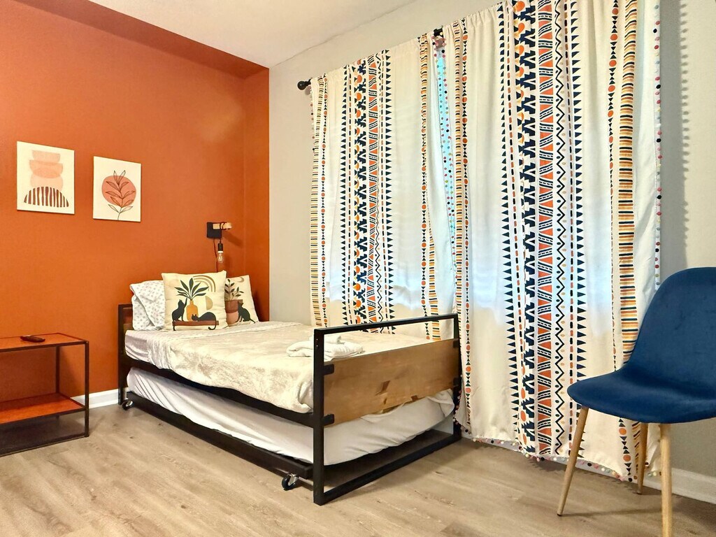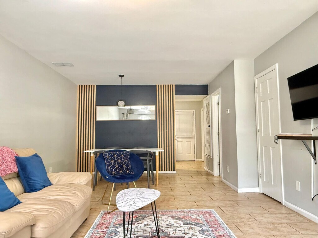 Welcome to this beautifully renovated townhouse, perfect for your stay. Featuring 2 bedrooms and 2.5 baths, this home offers a fully equipped kitchen with utensils and a coffee maker, and an in-unit washer/dryer. The primary bedroom features a king-size bed, while the secondary bedroom includes a double bed, a twin bed, and a twin pullout bed. Both bedrooms are equipped with flatscreen TVs for your entertainment. Located just 10 minutes from Duluth, GA, known for its international restaurants and stores, and only 6 minutes from I-85, this townhouse is ideally situated for easy access to nearby attractions. This renovated townhouse offers a serene retreat off a quiet residential street, perfect for families or groups. The property combines modern amenities with a cozy atmosphere. The fully equipped kitchen makes meal preparation a breeze, with all necessary utensils, cookware, and a coffee maker at your disposal. The primary bedroom boasts a luxurious king-size bed, while the secondary bedroom is versatile with a double bed, a twin bed, and a twin pullout bed, accommodating various sleeping arrangements. Located in a peaceful residential area, this townhouse is close to parks and outdoor spaces for relaxation. Just 10 minutes from Duluth, GA, a hub for international cuisine, and only 6 minutes from I-85, you'll have easy access to a variety of dining options and local attractions to explore. Parties are strictly prohibited, and we will enforce this rule to ensure a respectful environment for our neighbors. Quiet hours are between 21:00 and 9:00. [SI]