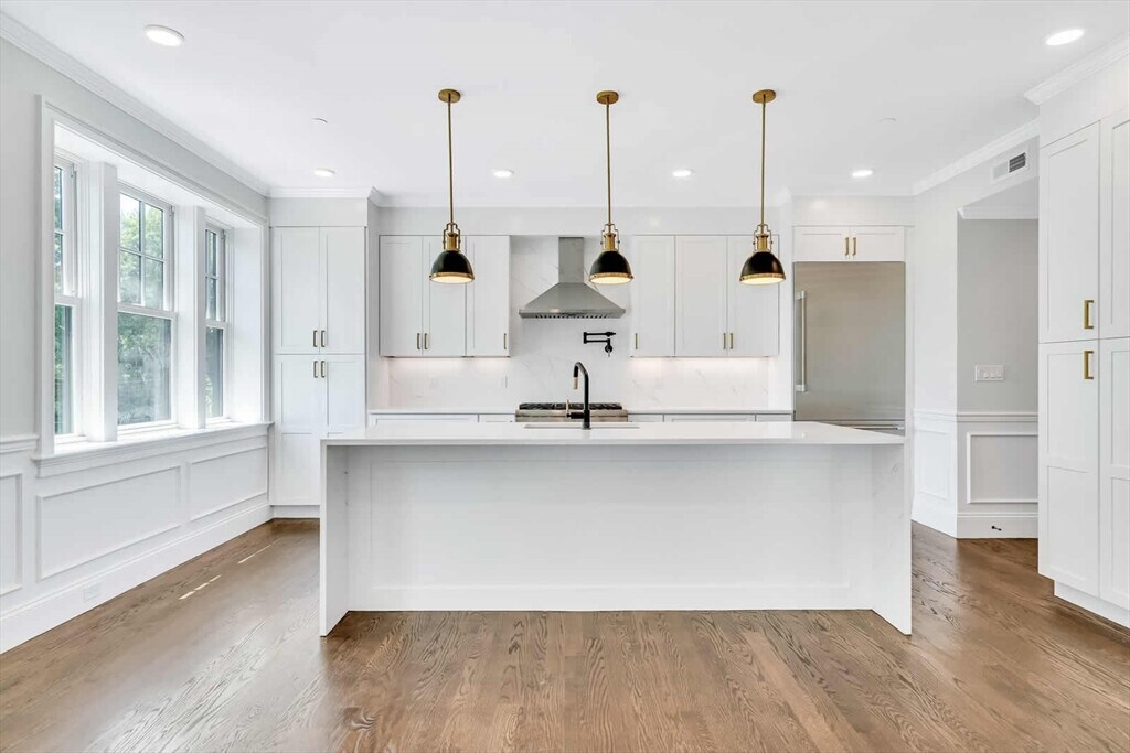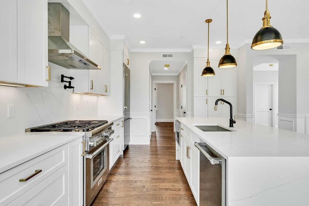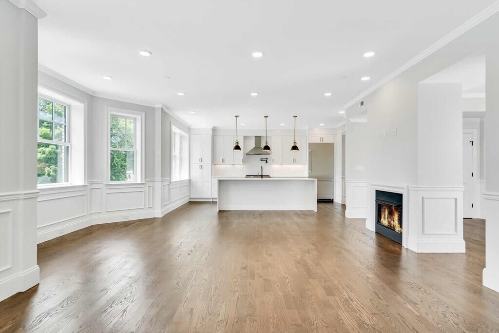 Walk to Longwood hospitals,cross the street to Lawrence School/playground,steps to Coolidge Corner,"T" and more ... 128 LONGWOOD has been rebuilt and redesigned offering four floor-through three+ bedroom homes with exclusive-use unit-level porches,roof deck and assigned parking ... sun streams into this exquisite top-floor three-four bedroom unit ... Front-facing 35+ft kitchen/living/dining open span with bay window,gas fireplace,custom moldings,decorative wainscoting ... 21+ft master bedroom,marble master bath,french doors,Thermador stainless appliance package,private roofdeck,abundant closets ... July1 2026 availability MLS# 73472232