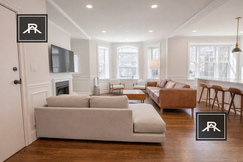 Walk to Longwood hospitals, cross the street to Lawrence School/playground, steps to Coolidge Corner, T and more ... 128 LONGWOOD has been rebuilt and redesigned offering four floor-through three bedroom homes with exclusive-use unit-level porches, roof deck and assigned parking ... sun streams into this first-floor three bedroom unit ... Front-facing kitchen/living open span with bay window, gas fireplace, custom moldings, decorative wainscoting ... 21+ft master bedroom, marble master bath, french doors, Thermador stainless appliance package, common roofdeck, abundant closet CATS OKAY DOG negotiable Fee Disclosure: Broker Fee: $8,100 Last Month Rent: $8,100 First Month Rent: $8,100 Security Deposit: $8,100 Disclaimer: Licensed real estate agent offering rental services. Unless we have a written landlord agreement, we represent the tenant. Broker fees apply only if agreed to in writing, and landlords may offer concessions that reduce or offset tenant costs. Listing info is for ad