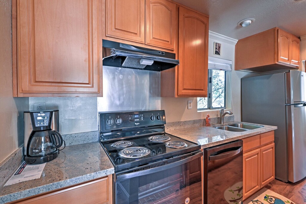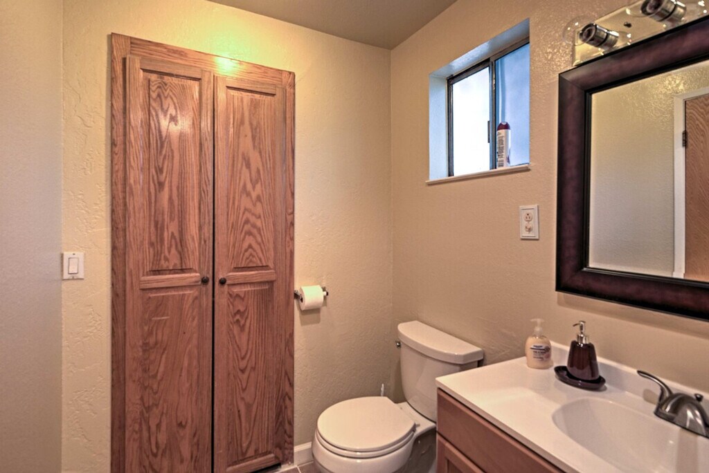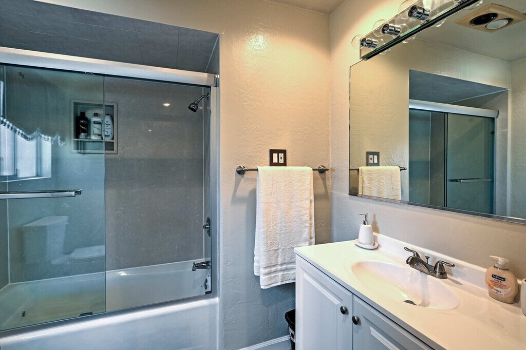 Plan a relaxing getaway with friends and family at this 3-bedroom, 3-bathroom vacation rental house in Gilroy. Set on 20 acres of land, this 2,500-square-foot home offers well-appointed accommodations and is close to downtown, boutique wineries, shopping, and more. You'll love being centrally located close to San Jose, Monterey, Santa Cruz, and San Francisco. The property requires 2 steps for access. Soaring palm trees welcome you to your new home-away-from-home. Kick back and relax on the plush furnishings in the living room, which features a wood-burning fireplace and a flat-screen TV. When you're ready to eat, step into the fully equipped kitchen with everything you need to whip up a tasty feast for the whole group. Keep the cook company at the 3-person breakfast bar before setting the dining room table for 8. The expansive patio is sure to be your favorite spot with ample bench seating, a gas grill, an outdoor table, and a pergola. This home is set on 20 acres of land and is close to downtown Gilroy, boutique wineries, and shopping. You'll love being centrally located close to San Jose, Monterey, Santa Cruz, and San Francisco, making it an ideal base for exploring the region. There is another vacation rental unit on the premises, and there may be other travelers present during your stay. The property does have cell phone service, but it may be spotty since it is located in a rural area. No smoking, no pets allowed, and absolutely no parties, events, or large gatherings of any kind are permitted. Guests must be at least 25 years old to book. Additional fees and taxes may apply, and a photo ID may be required upon check-in. [SI]