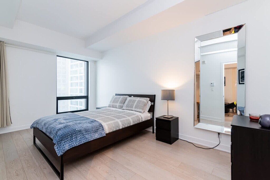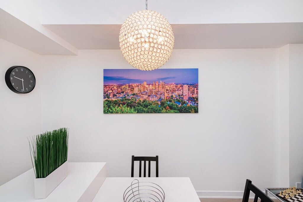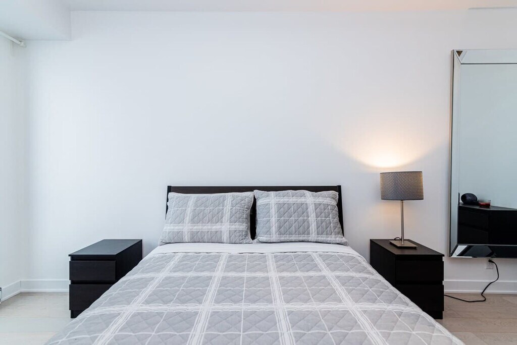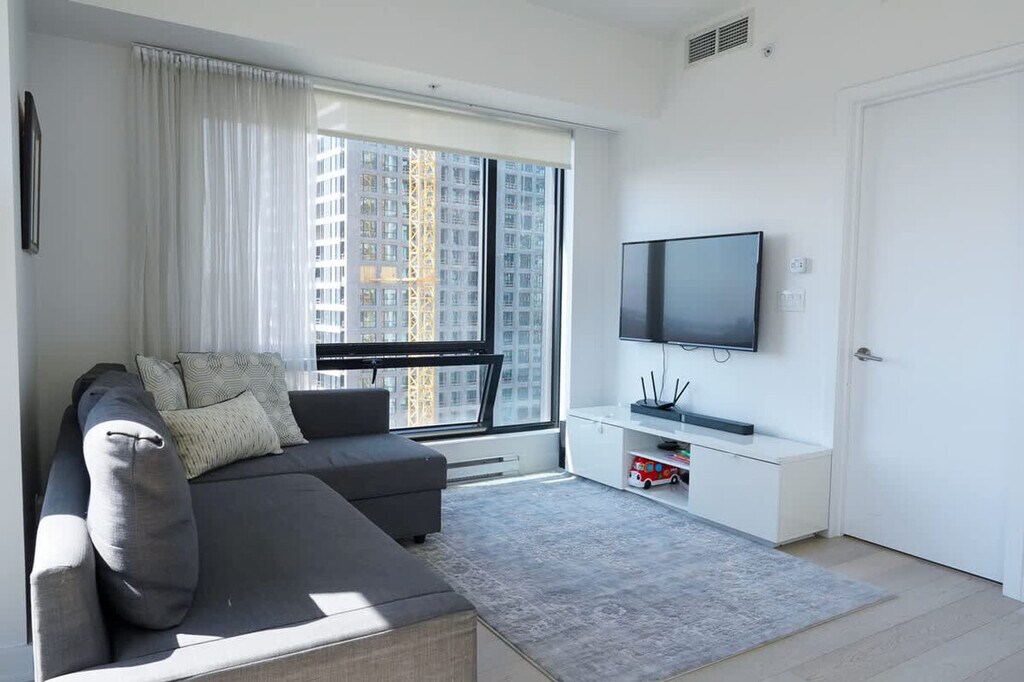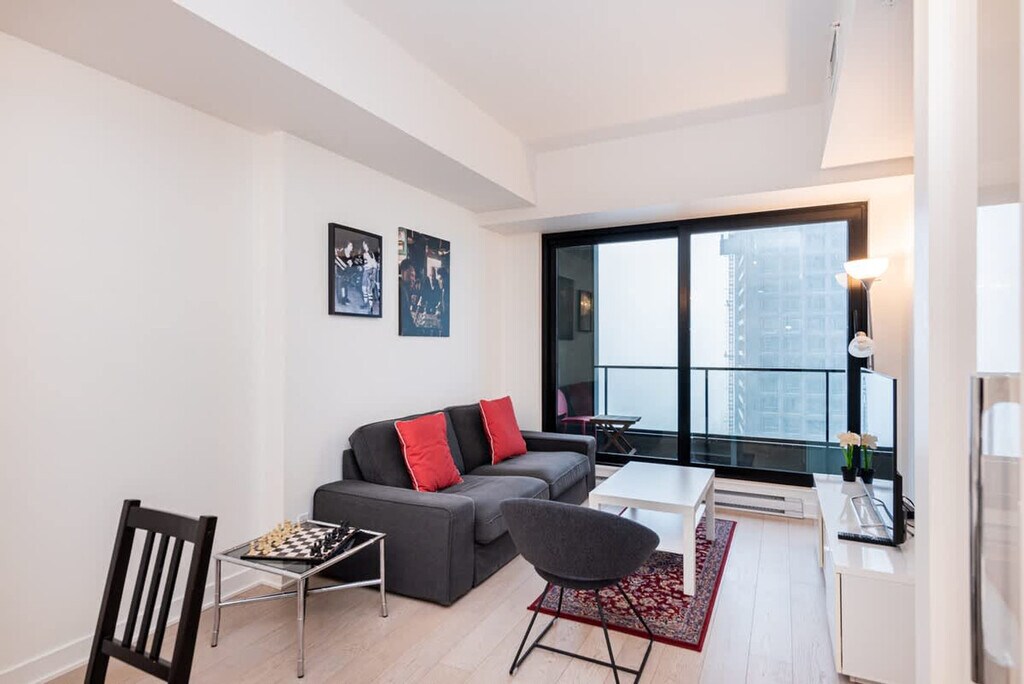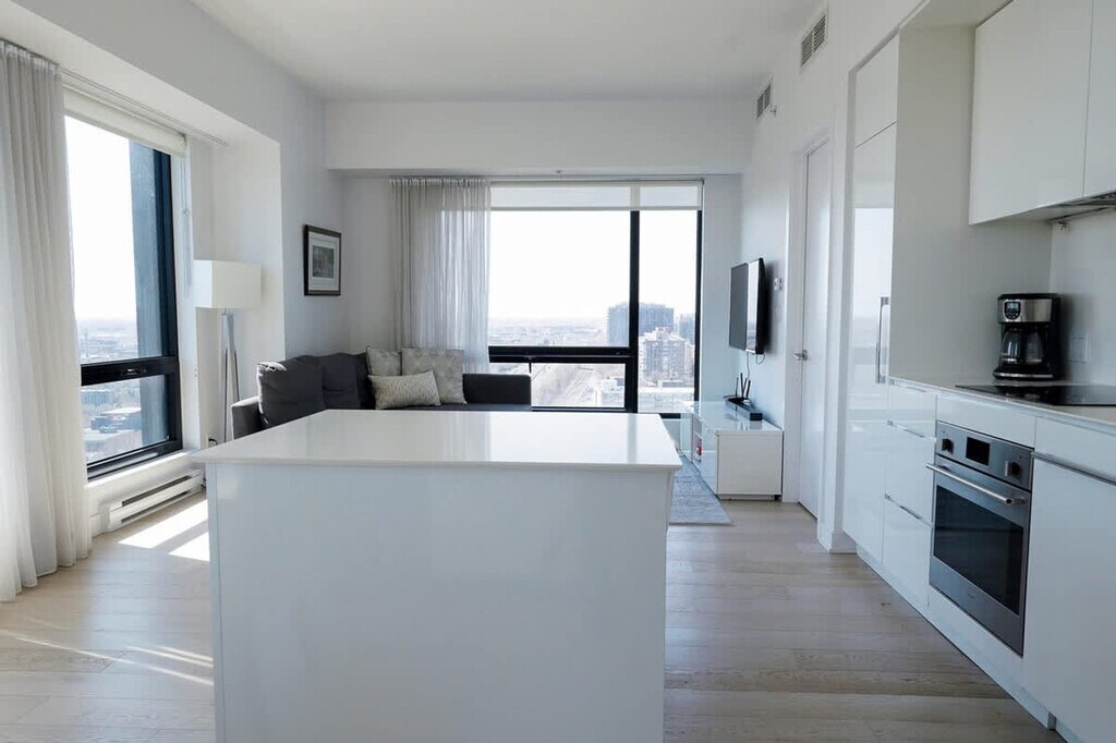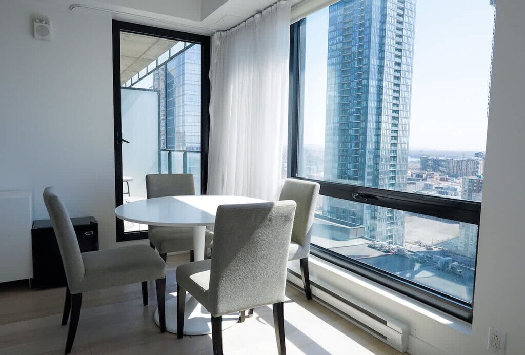 The advertised rate of C$2,160/month is the lowest available price, based on a 30 day(s) stay with a move-in date of October 2, 2026. Rates vary depending on the duration of stay, season, and other parameters. For exact pricing and additional pricing components, please visit our website and enter your desired move-in and move-out dates. The rate is applicable when billed upfront; it can be higher if billed in multiple payments. Experience luxury living and feel at home in this modern 1-bedroom condo on the 22nd floor of Tour des Canadiens in downtown Montreal. Enjoy breathtaking city views from your private balcony. This fully furnished condo features a spacious bathroom and an open-concept layout with high-end finishes. All utilities are included in the rent, such as electricity, heating, and high-speed internet. Enjoy top amenities including a heated pool, gym, sauna, spa, game room, and the Skylounge on the 54th floor, with 24/7 security. This condo offers an ideal location to enjoy everything Montreal has to offer, located near many points of interest such as the Bell Centre, Concordia University, the Rio Tinto Alcan Planetarium, Ste. Catherine Street, McGill University, the underground city, New City Gas, Starbucks, McDonald's, René Levesque Boulevard, Windsor Station, the Deloitte Tower, and Place Ville Marie. Furthermore, within walking distance, you will find some of Montreal's best restaurants and nightlife venues. Additionally, the Bonaventure and Lucien l'Allier metro stations (orange line) are nearby, providing unparalleled mobility to explore the city. Quiet hours are in effect from 11:00 PM to 8:00 AM. Parties, events, and loud noise are strictly prohibited and may lead to penalties and immediate eviction. Smoking of any kind (tobacco, cannabis, vaping, etc.) is not allowed inside the apartment, and if smoking is detected, a cleaning fee will be applied. Pets are not permitted in the apartment, and any unauthorized presence of pets may result in a penalty and immediate termination of the stay. Only guests registered in the reservation are permitted to stay in the apartment, and unauthorized occupancy may result in penalties and cancellation of the reservation. Check-in is from 4:00 PM, and guests must confirm their arrival time in advance to coordinate access. Check-out is by 11:00 AM. Late departures without approval may result in additional charges. Guests are expected to leave the apartment in a reasonably clean condition, and additional cleaning charges may apply if the apartment is left excessively dirty. Guests are responsible for returning all keys and access cards, and lost or unreturned items may result in replacement fees. Any damage to the apartment or its contents must be reported immediately, and failure to report damage may result in deductions or charges. The apartment is for residential use only, and visitors are not allowed without prior approval. Access to the unit is reserved with at least 24 hours’ notice for maintenance or routine inspections. We are not liable for any lost or stolen items, and guests are encouraged to secure all doors and windows when leaving the apartment. Violations may lead to additional charges, cancellation of the stay, and/or immediate eviction without refund. [SI]