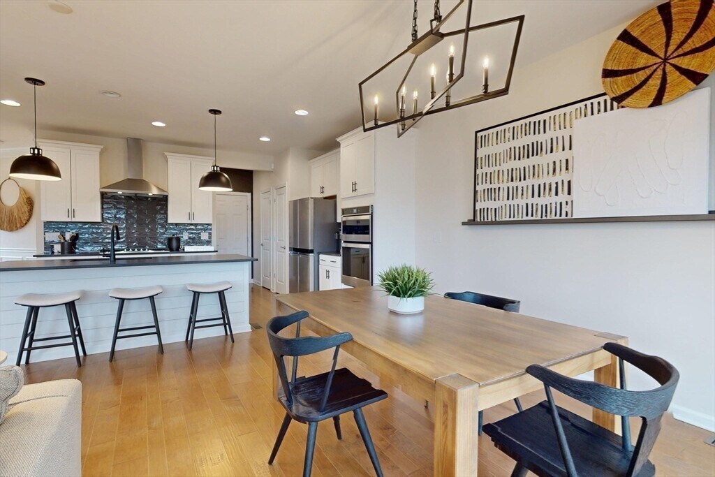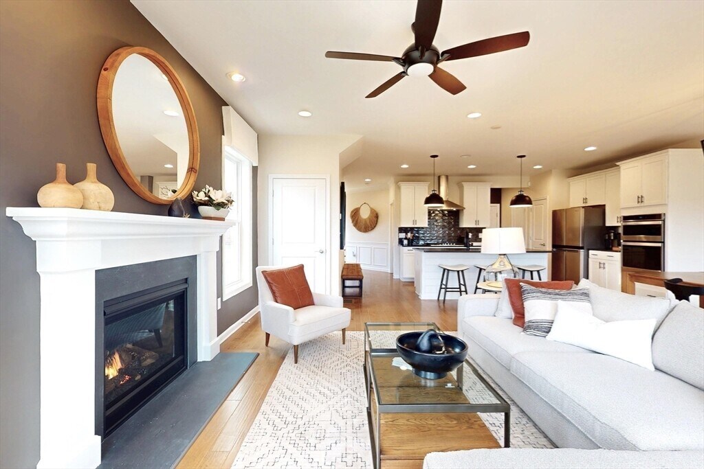 Gorgeous newer construction luxury townhouse at Pulte Homes Cold Brook Crossing, conveniently located on Rt 117 in Sudbury. This stunning newer construction includes all the modern updates; gorgeous open concept first floor with 9 ft ceilings, oversized windows and tons of natural light, includes gourmet kitchen, dining, and living room with half bath, and access to deck and garage. Kitchen w SS appliances, center island w quartz counters, double sink and pull-down faucet. Living area includes gorgeous quartz gas fireplace. Dining area includes modern chandelier and tons of natural light from sliding doors leading to deck. Second floor has all new carpet and includes Primary bedroom w private bath, double vanity sinks, walk-in shower and large walk-in closet, second bedroom has walk-in closet, third room for office or guests, shared bathroom, and 2nd fl laundry room.