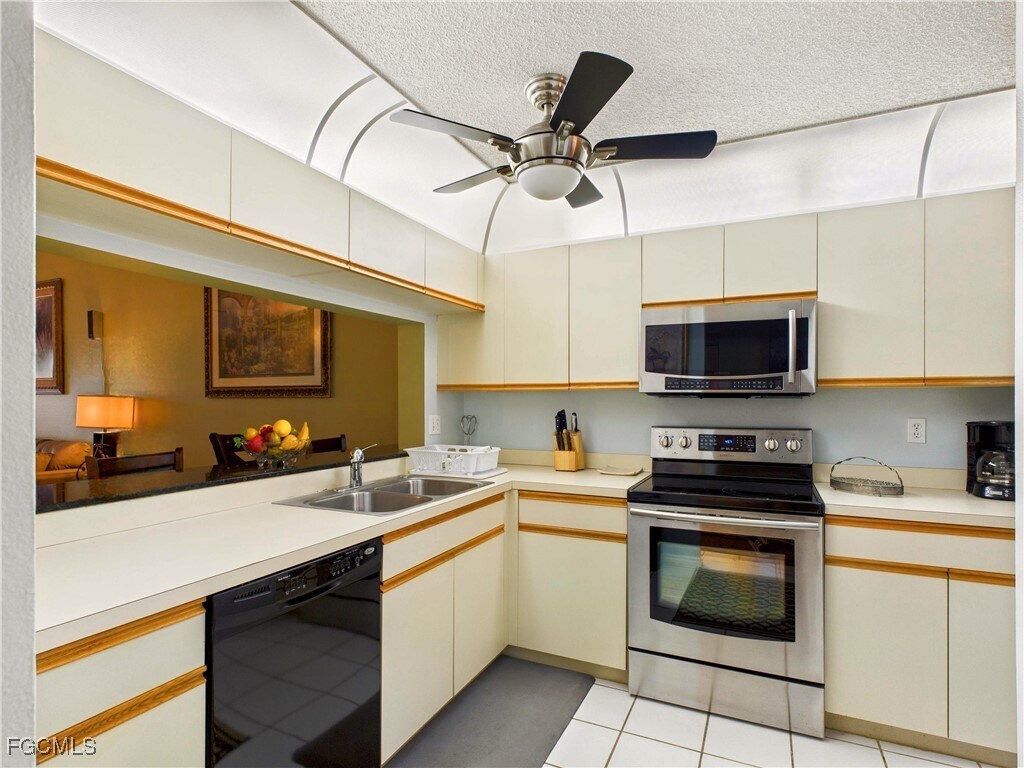 Enjoy this first-floor condo in North Naples. The open den features a futon while the primary bedroom has a king bed and guest bedroom has 2 twins. The screened lanai overlooking the lake is the perfect way to enjoy the sunrise or sunset. And walk around the lake to the pool to meet your neighbors for an afternoon in the sun.