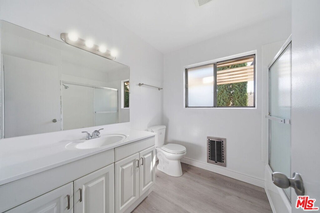 TOP FLOOR one bedroom remodeled unit in a well maintained secured open air mid century building with lots of light and a pool. Other features include AC, lots of storage, new wood vinyl floors throughout, an outdoor patio and one assigned covered parking spot that is gated. Community laundry on-site. PET FRIENDLY. MLS# 26656683