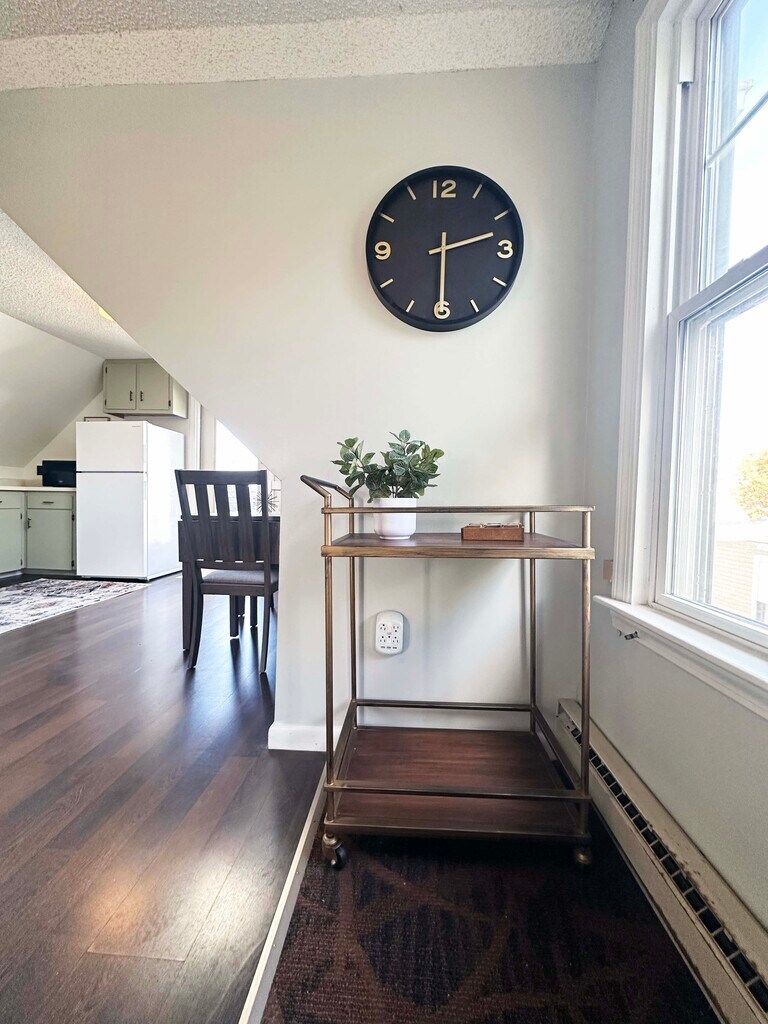 Perched on the third floor just steps from downtown, this fully furnished one-bedroom/studio apartment blends comfort, sunlight, and convenience. The bright eat-in kitchen—complete with a skylight—brings in natural light all day, while a cozy private deck offers the perfect spot for your morning coffee or an evening unwind.Located just a couple blocks from Main Street’s shops, restaurants, and cafés, and right on the Colby College bus route, you’ll have easy access to everything Waterville has to offer. One dedicated parking spot is included, and the walk-up layout means quiet, top-floor living with no one above you.Whether you’re here for a semester, a work assignment, or a long stay in the heart of Central Maine, this apartment offers a bright, move-in-ready space to call home.