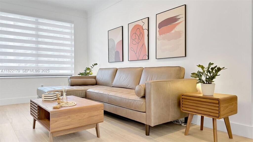 Fully furnished monthly rental. Modern 3 bed, 2 bath home with smart features throughout, including 7 smart TVs, Sonos sound, Philips Hue lighting, Ecobee thermostat, smart mirrors, and blackout shades. GE Profile kitchen with air fryer oven, glass cooktop, and wine fridge. Bedrooms include premium mattresses, safes, and workstations with standing desks and ultra-wide monitors. 5G internet with secure access points. Private fenced yard with lounge deck, outdoor TV, grill, and fitness gear. Washer/dryer, impact windows, and driveway parking. Minutes to Brickell, Downtown, Grove, Gables, and beaches.
