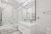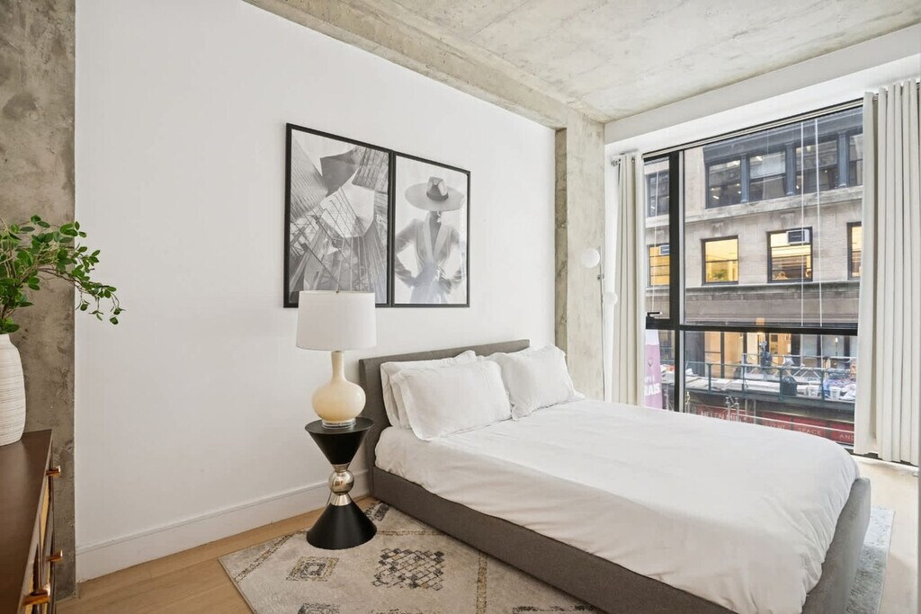 Feel at home in this rare full-floor luxury 2-bedroom apartment with a private elevator entry in a brand-new building in Chelsea/NoMad. Bright, modern, and exquisitely furnished, this apartment features high ceilings, floor-to-ceiling windows, Sub-Zero and stainless-steel appliances, an in-unit washer/dryer, and central cooling. The open-concept living and dining area features beautiful wood floors, exposed concrete ceilings, and wall-to-wall windows framing both north and south exposures. The chef’s kitchen is fitted with a Sub-Zero refrigerator, premium stainless-steel appliances, and custom cabinetry with sleek, modern finishes. The spa-inspired bathroom includes heated marble floors, a double vanity, and a built-in heated towel rack, while a powder room adds convenience. Fully equipped with everything needed for extended stays, this apartment is designed for both comfort and style. This apartment is available for short-term or long-term stays. Situated between Fifth and Sixth Avenues, this centrally located Chelsea/NoMad address offers unrivaled access to some of Manhattan’s best dining and attractions. Madison Square Park, Eataly, Whole Foods, and Michelin-rated restaurants are all just moments away. Commuting is effortless with the 23rd Street (R/W, F/M) and 28th Street (1, 6) subway stations only a few minutes’ walk. [SI]