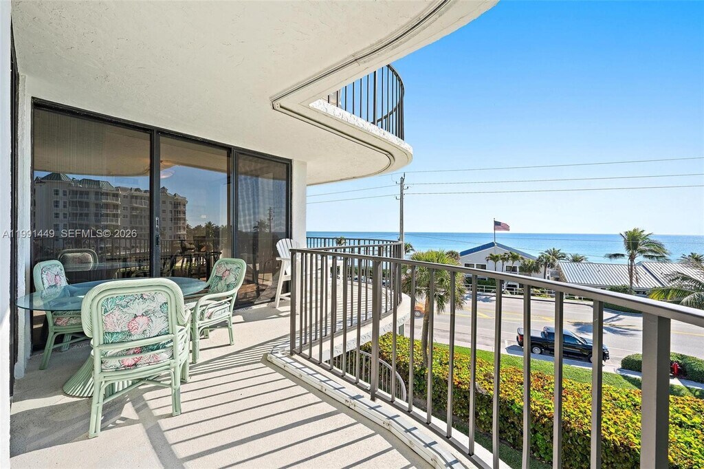 Enjoy stunning ocean views from every room in this 3BR/2BA condo with a spacious wraparound balcony.The primary suite boasts a walk-in closet, Roman tub, dual sinks, and a separate shower. The brand-new kitchen features updated cabinets and countertops, an eat-in area, formal dining space, and new flooring in the main living areas. Additional highlights include a full-size washer and dryer, hurricane shutters, and secure under-building garage parking. Just steps to Jupiter Beach and close to restaurants, shopping, and the Jupiter Inlet. Resort-style amenities include heated pool, hot tub, sauna, fitness center, club room, concierge, workshop, bike/kayak/paddleboard storage area, vehicle wash area, library, and manned security. No pets, smoking or vaping. Available 4/16/26–10/15/26. MLS # A11991449