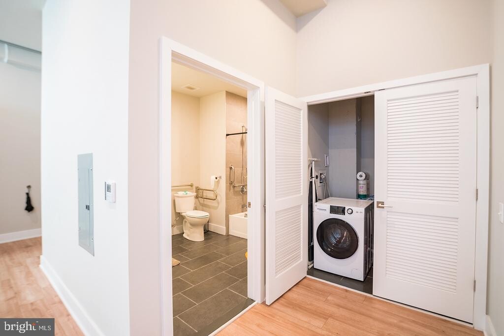 *Available NOW* Don't miss the chance to live in this junior 1 bedroom, 1 bathroom apartment in the newly renovated Smith School! As you walk into this unit, you'll notice the unique layout. First, the massive bathroom features a large vanity with quartz counter top and tub/shower with a sliding glass door. Continuing through the original door frame into the unit is the washer/dryer, large coat closet, and then opens up into the breathtaking kitchen and living room featuring beautifully bright floor to ceiling windows. The kitchen has quartz counter tops, white cabinets against subway tile back splash, a garbage disposal and stainless steel appliances. The loft-style bedroom has a wide open doorway and a large double closet. You will enjoy hardwood floors, mini split system heating/cooling, recessed lighting and incredibly high ceilings. The Walter George Smith Public School, listed on the National Register of Historic Places, has undergone an amazing transformation to bring you these brand new luxury apartments! Each unit features high end finishes while preserving it's historic character such as the chalkboards, original trim and closets, and overall unique floor plan. All tenants will have access to the two outdoor spaces (over half an acre combined!) on ground floor and mezzanine patios, and roof deck with stellar skyline views! Located at 19th and Wharton in Point Breeze, you'll be minutes from the Ringos, Hannah K Cafe, Aldis, CVS, Bagels & Co., American Sardine Bar, Graduate Hospital, East Passyunk and MORE! Lease Terms: Generally, 1st month, and 1 month security deposit due at, or prior to, lease signing. Other terms may be required by Landlord such as last month’s rent upfront. $50 application fee per applicant. electricity, gas (if applicable), cable/internet and $10/mo technology fee. Residents Responsible for Electric Usage & Flat Monthly Water/AC/Heat fee of $100. $25 service fee plus cost of the air filter will be charged quarterly for routine air filter replacement. Landlord Requirements: Applicants to make 3x the monthly rent in verifiable gross income, credit history to be considered, no evictions within the past 5 years, and must have a verifiable rental history with on-time rental payments. Exceptions to this criteria may exist under the law and will be considered. Cosigners will be considered. *Price reflects the net effective rent when a 1-month credit is applied at $1,550/mo. *Pets: 1 dog under 45 lbs allowed; $50/mo pet fee required; Sorry No Cats