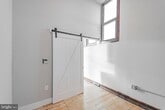 *Available 3/1* One of the more unique units in the Smith School, this bright 1 bedroom, 1 bathroom apartment flows with the natural curvature of the building while bathing in natural sunlight from the oversized windows that line the entire north wall. The large floor plan includes an open concept living room and kitchen with quartz counter tops and island with a breakfast bar, white cabinets, textured white subway tile back splash, stainless steel appliances plus a washer/dryer closet. Through the sliding barn door is the bedroom illuminated by two more oversized windows and the en-suite bathroom with a glass shower, tub and sleek vanity. You will also enjoy original hardwood floors, mini split system heating/cooling, and recessed lighting. The Walter George Smith Public School, listed on the National Register of Historic Places, has undergone an amazing transformation to bring you these brand new luxury apartments! Each unit features high end finishes while preserving it’s historic character such as the chalkboards, original trim and closets, and overall unique floor plan. All tenants will have access to the two outdoor spaces (over half an acre combined!) on ground floor and mezzanine patios, and roof deck with stellar skyline views! Located at 19th and Wharton in Point Breeze, you’ll be minutes from the OCF Coffee House, American Sardine Bar, Graduate Hospital, East Passyunk and MORE! Lease Terms: Generally, 1st month, and 1 month security deposit due at, or prior to, lease signing. Other terms may be required by Landlord such as last month’s rent upfront. $50 application fee per applicant. Residents Responsible for Electric Usage & Flat Monthly Water/AC/Heat fee of $100Additional fees or requirements may be applicable for units with Homeowners or Condo Associations. Landlord Requirements: Applicants to make 3x the monthly rent in verifiable gross income, credit history to be considered, no evictions within the past 5 years, and must have a verifiable rental history with on-time rental payments. Exceptions to this criteria may exist under the law and will be considered. Cosigners will be considered. *Sorry, no cats *1 dog under 45 lbs permitted with owner approval + $50/mo pet fee