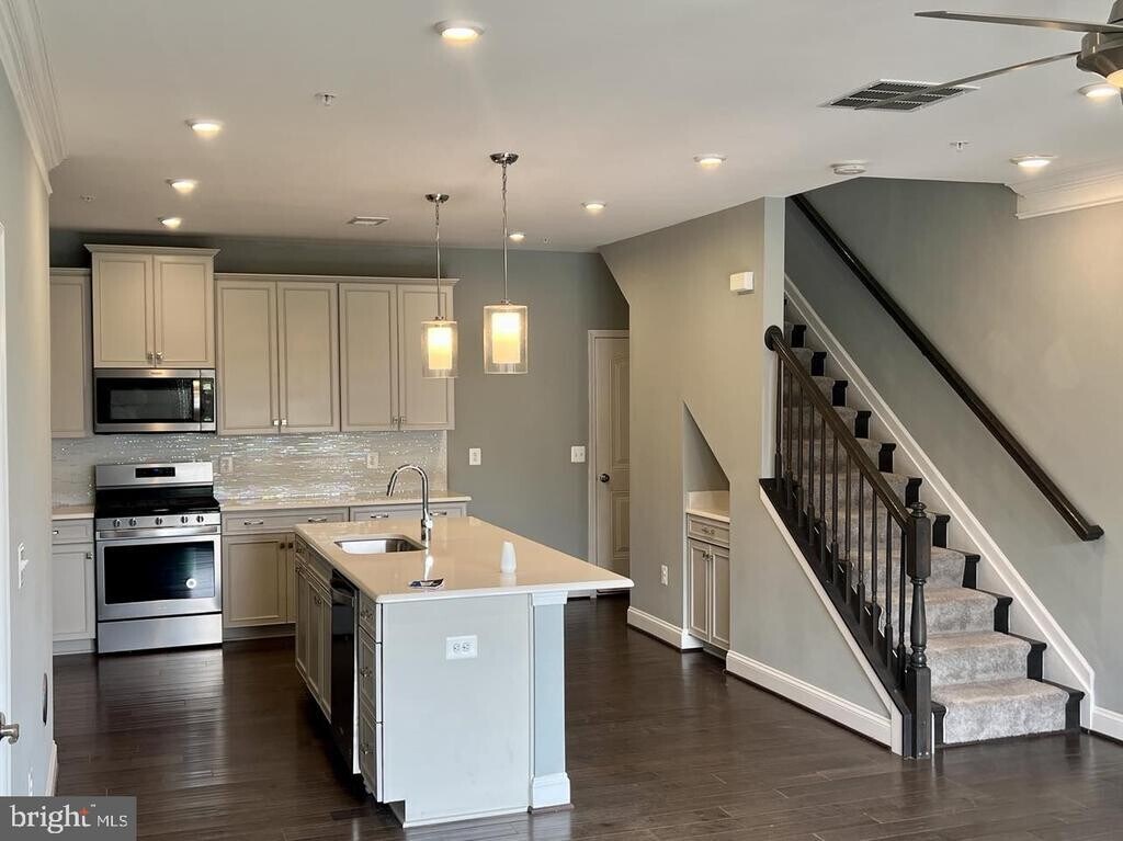 Beautiful lower-level, end-unit garage townhome in Crofton's lovely Riverwalk community. This model home is equipped with many upgrades! As you walk in you will be greeted by an open-concept main level featuring a large, light-filled living room, gleaming wood floors, and a gourmet eat-in kitchen. The kitchen has all the bells and whistles from a large kitchen island, to upgraded stainless steel appliances, gas stove, quartz countertops with an under-mount sink, large pantry cabinet with roller shelves, pendant lighting, and a cozy built-in coffee bar! This level also features a coat closet as you enter into the home from your garage, lots of recessed lighting, and a powder room. As you head on upstairs, you'll notice an abundance of natural light from all of the extra windows. Check out the amazing open loft area that can be used as an extra living space or office, as well as the two very large bedrooms, each with their own bathroom. The primary bedroom boasts an ensuite bathroom with a double vanity, lots of counter space, double stall shower with a wrap-around bench, a separate water closet, huge walk-in closet, and beautiful upgraded tile throughout. Other features include a linen closet, bedroom-level laundry with washer and dryer included, and a lovely balcony on which to enjoy that morning cup of coffee, or evening glass of wine. And let's talk about location, location, location! If you haven't checked out Waugh Chapel Shopping Center, it has it all; Target, Wegmans, Dicks Sporting Goods, Bed Bath & Beyond, many boutique stores, countless fast-food as well as more upscale dining options, a movie theatre, as well as a go-kart track nearby! This home is also centrally located with just a short commute to Fort Meade, Annapolis, and Arundel Mills, as well as DC and Baltimore. Lots of overflow parking and a playground across the street. Minimum required credit score is 650, and minimum annual income requirement is 42x the monthly rent.