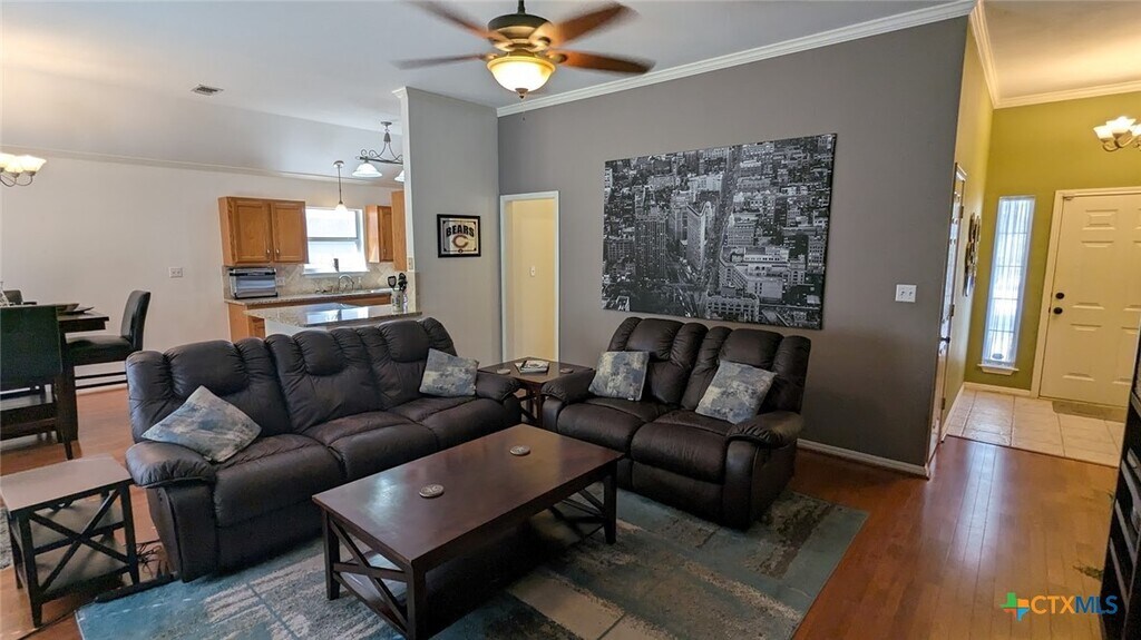 Single family, corner lot home is located across the street from Crockett Elementary in the Oak Heights subdivision. This 3 bedrooms, 2 bath, 2 Car garage has wood flooring in the main living areas, carpet in each of the bedrooms, ceiling fans, open floorplan, granite kitchen countertops, vaulted ceilings, living room fireplace, primary bathroom contains a full size bathtub, and a separate stand up shower, washer and dryer included and a fenced in back yard. Contact our management office today to set up showings or to get your questions answered. Pets on case by case basis.