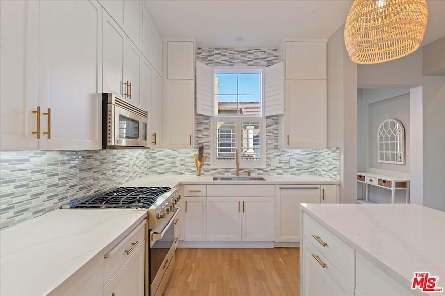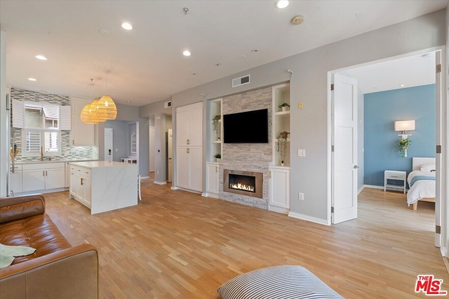 Set atop one of Playa Vista's most coveted addresses, this sunlit penthouse at 13020 Pacific Promenade, Unit 401, offers a rare fusion of refined design, effortless comfort, and coastal sophistication. Encompassing over 1,300 square feet, this fully furnished two-bedroom, two-bath residence delivers an elevated lifestyle framed by soaring 10-foot ceilings and an expansive open-concept layout. At the heart of the home, a chef-caliber kitchen showcases a curated suite of premium appliances, Sub-Zero refrigeration, Viking cooking suite, and Miele dishwasher, complemented by a striking custom waterfall island adorned with Turkish marble and intricate inlay. The living area, anchored by a sculptural stone fireplace, flows seamlessly onto a rare 200-square-foot covered balcony, an inviting extension of the home where tranquil bluff views create a daily backdrop of calm. The primary suite is a private sanctuary, thoughtfully appointed with a Japanese joinery king bed, a luxurious Nest Bedding mattress, and a spa-inspired ensuite featuring Turkish marble finishes, a multi-function Moen shower system, and a sleek TOTO toilet. Every detail evokes a sense of quiet indulgence. A versatile second bedroom effortlessly transforms between a guest retreat and a productive workspace, featuring a queen Murphy bed and a built-in desk, with convenient access to a full bath ideal for modern living. Additional enhancements include an in-unit Electrolux washer and dryer, keyless entry, and secure gated tandem parking for two vehicles, complete with a dedicated 240V EV outlet and Tesla charger. This offering extends beyond the residence itself. Monthly rent includes exclusive access to Playa Vista's premier amenities, including The Resort's state-of-the-art fitness center and pool, the Centerpointe Club, and an array of parks, courts, and scenic trails all within a secure, master-planned community. Perfectly positioned within walking distance to Playa Vista's many restaurants, Whole Foods, Starbucks, and Cinemark, and just moments from Silicon Beach's leading innovators, including Google, Meta, and Microsoft this residence places the very best of Los Angeles within effortless reach, from the shores of Venice Beach to the convenience of Los Angeles International Airport. Minimum 660+ credit score required, with income at least 2.5x the monthly rent. MLS# 26749181