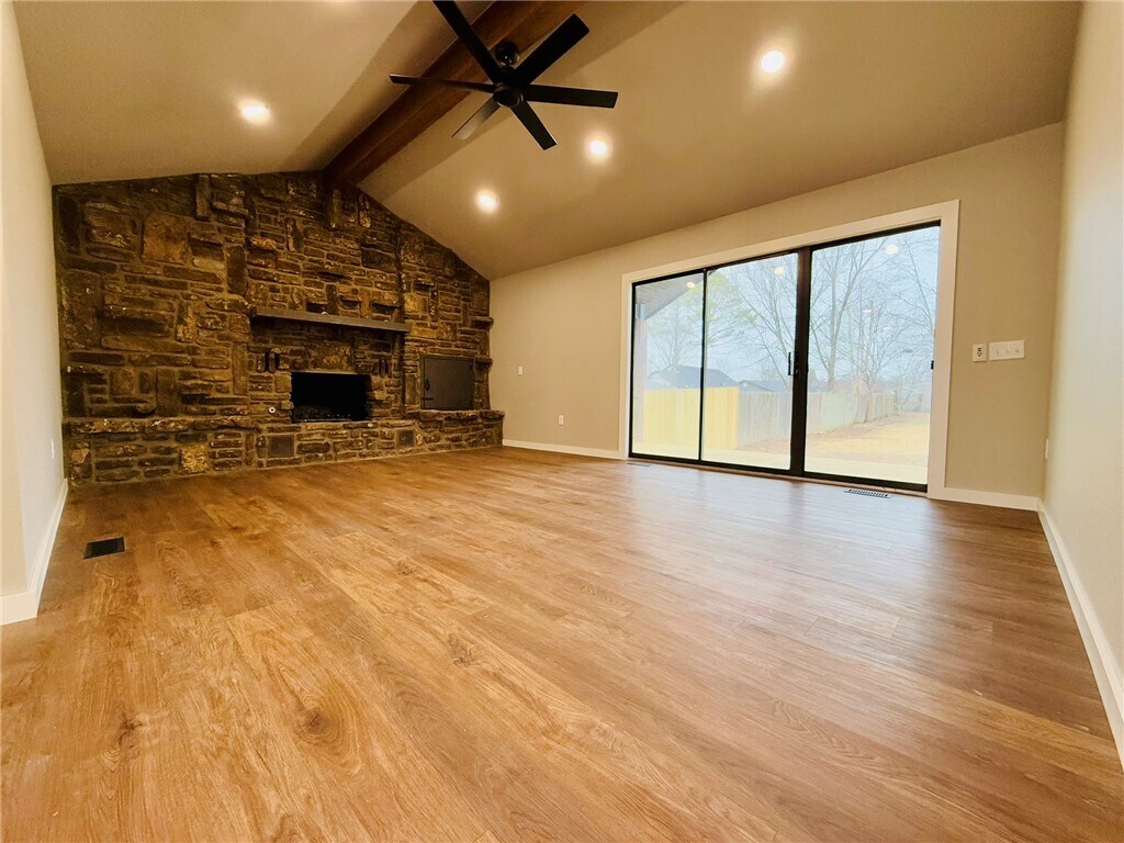 Completely Renovated. Just minutes from Downtown Bentonville and bike trails. Wood style flooring throughout. Living room has vaulted ceiling and wood burning fire place with original native stonework. Kitchen features stainless appliances, new cabinets and granite. Master bedroom includes double sinks, large tile shower and large walk in closet. Awesome covered deck that leads to huge fully fenced back yard. To Apply or for more Rentals please visit